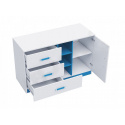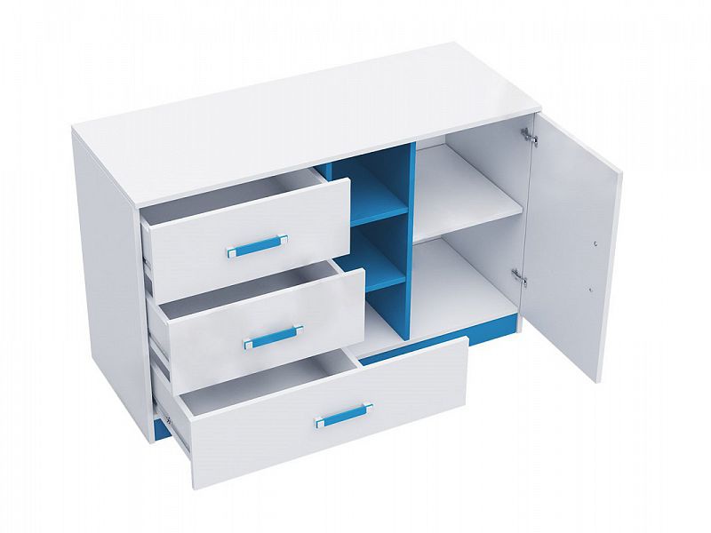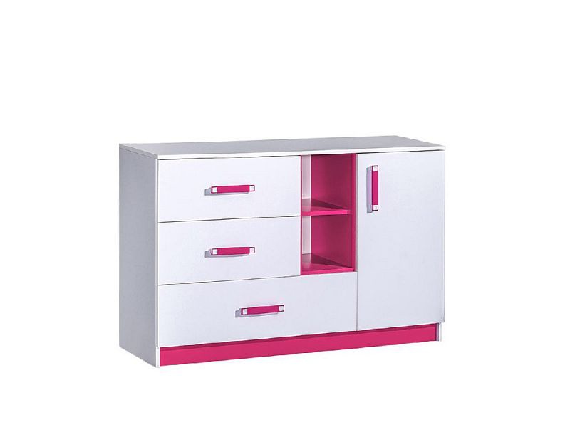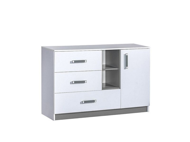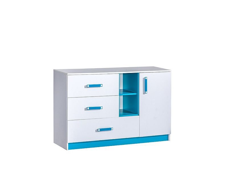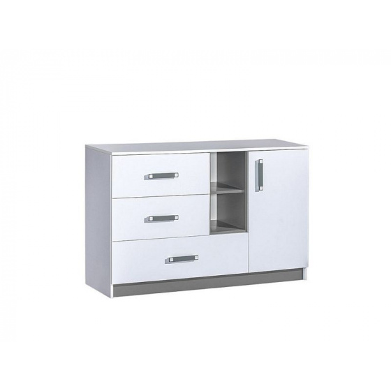 Komoda TARA 7 - policová s plnými dvířky, otevřenou odkládací nikou a šuplíky