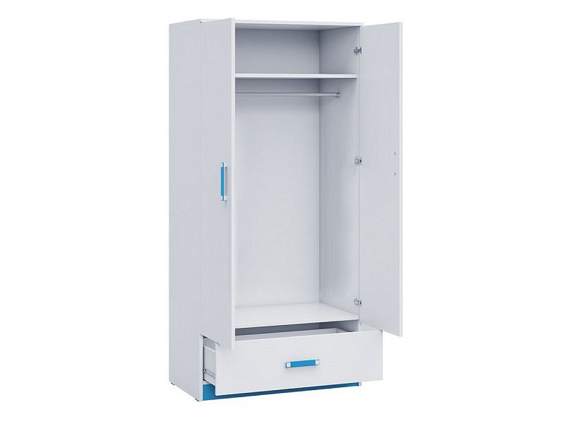 Šatní skříň TARA 1 - dvoudveřová, jedna police, šatní tyč, ve spodní části šuplík