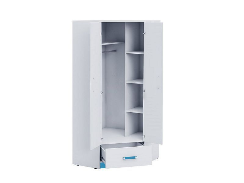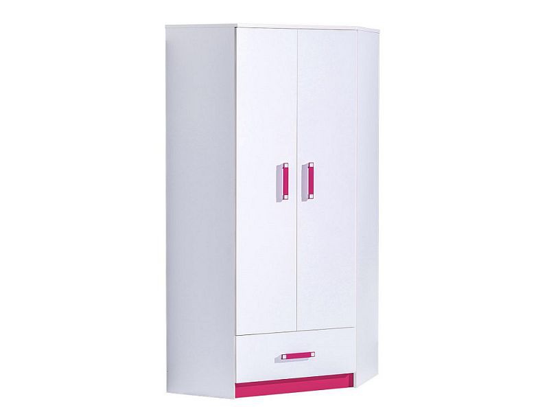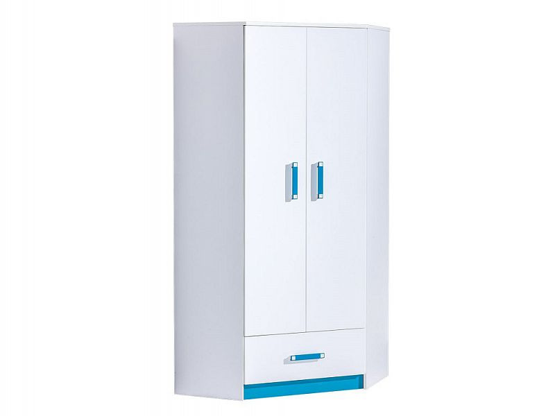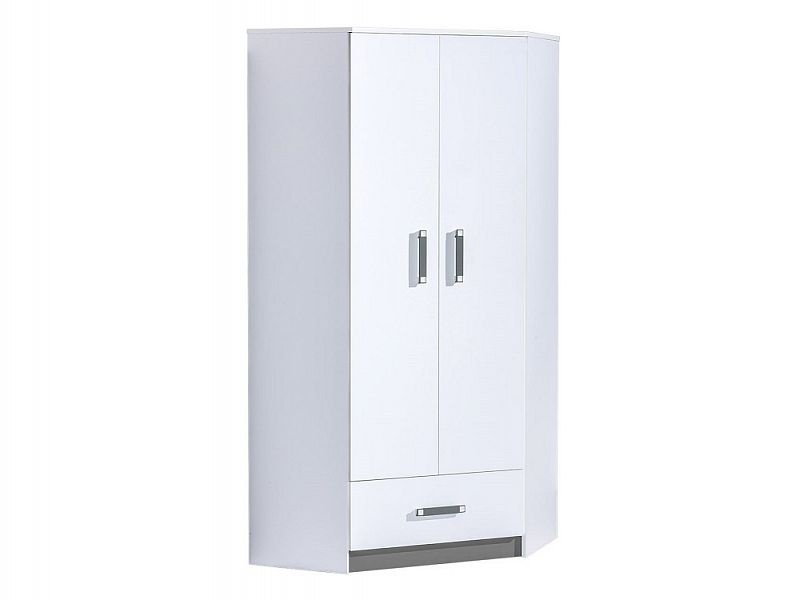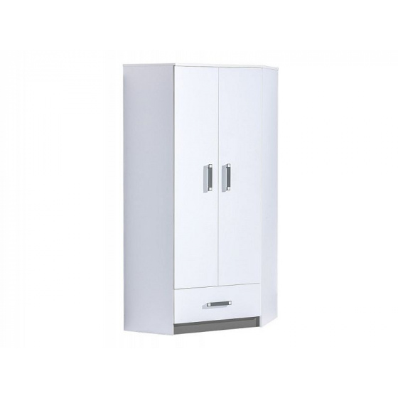 Šatní skříň rohová TARA 2 - dvoudveřová, police, šatní tyč, šuplík