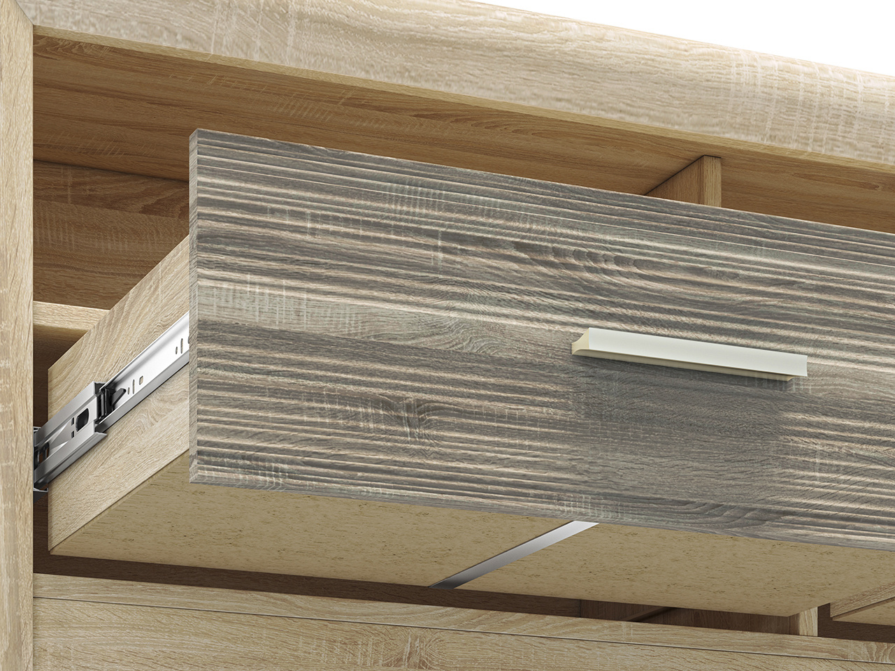 Sektorový nábytek CASTEL je v barevném provedení: dub sonoma světlý ( korpus a čelní plochy ) + MDF dub truflowý ( dekorativní lišta )