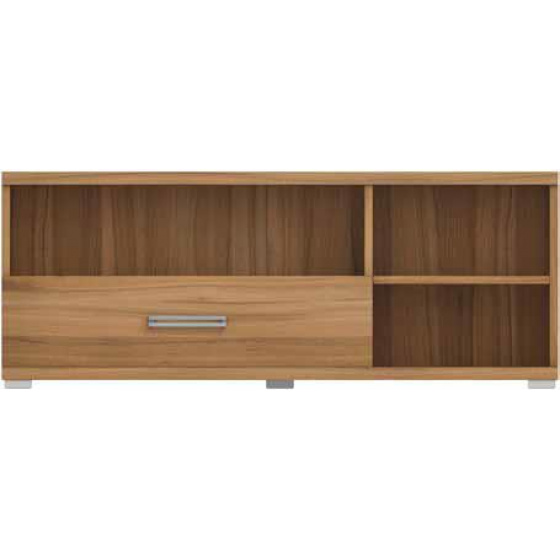 Televizní stolek N 090 - vespod šuplík, nahoře a po straně otevřené odkládací niky. Velký výběr barevného provedení, včetně kombinací barev je samozřejmostí. Výběrem těch správných úchytů dovršíte svůj jedinečný design. Skříňka lze využít nejen jako televizní stolek viz foto.