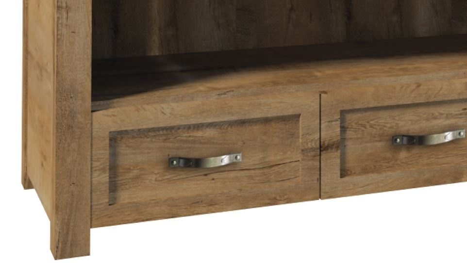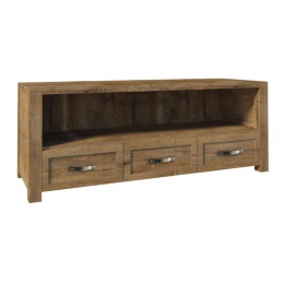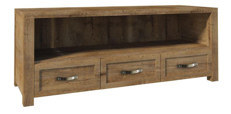 Televizní stolek RTV ze systému NEVADA je tří šuplíkový s otevřenou odkládací nikou pod horní deskou. Vyrábí se z kvalitní MDF s viditelnou strukturou dřeva v barevném provedení dub Lefkas.