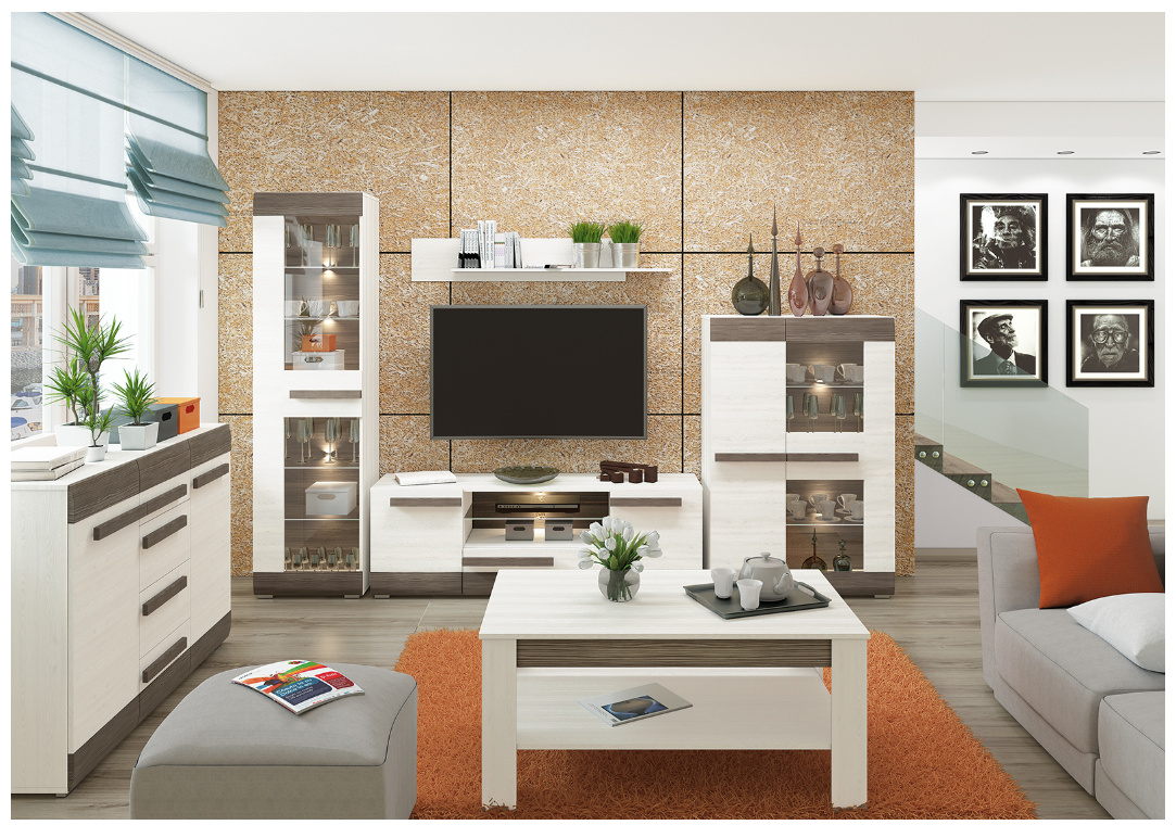 Systém BLANCO je moderní nábytek s přirozeným zabarvením, které poskytuje mnoho variant pro praktické uspořádání. Kombinace bílé a šedé borovice je perfektní jak pro moderní obývací pokoj, tak i pro vybavení pokoje teenagerů. Unikátní design dřevěných rukojetí dává nábytku charakter a styl. Sektor Blanco je praktické, originální řešení neobvyklého designu pro vybavení Vašich pokojů.