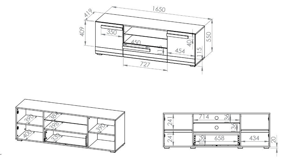 Rozměry: š. 165 cm / v. 55 cm / hl. 42 cm