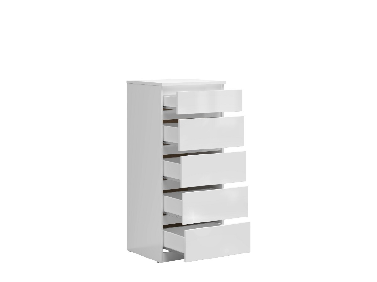 Komoda KOM5S ze systému TETRIX - s pěti šuplíky, vyrábí se z kvalitního lamina v barevném provedení bílá lesk, max. zatížení šuplíku 4 kg.