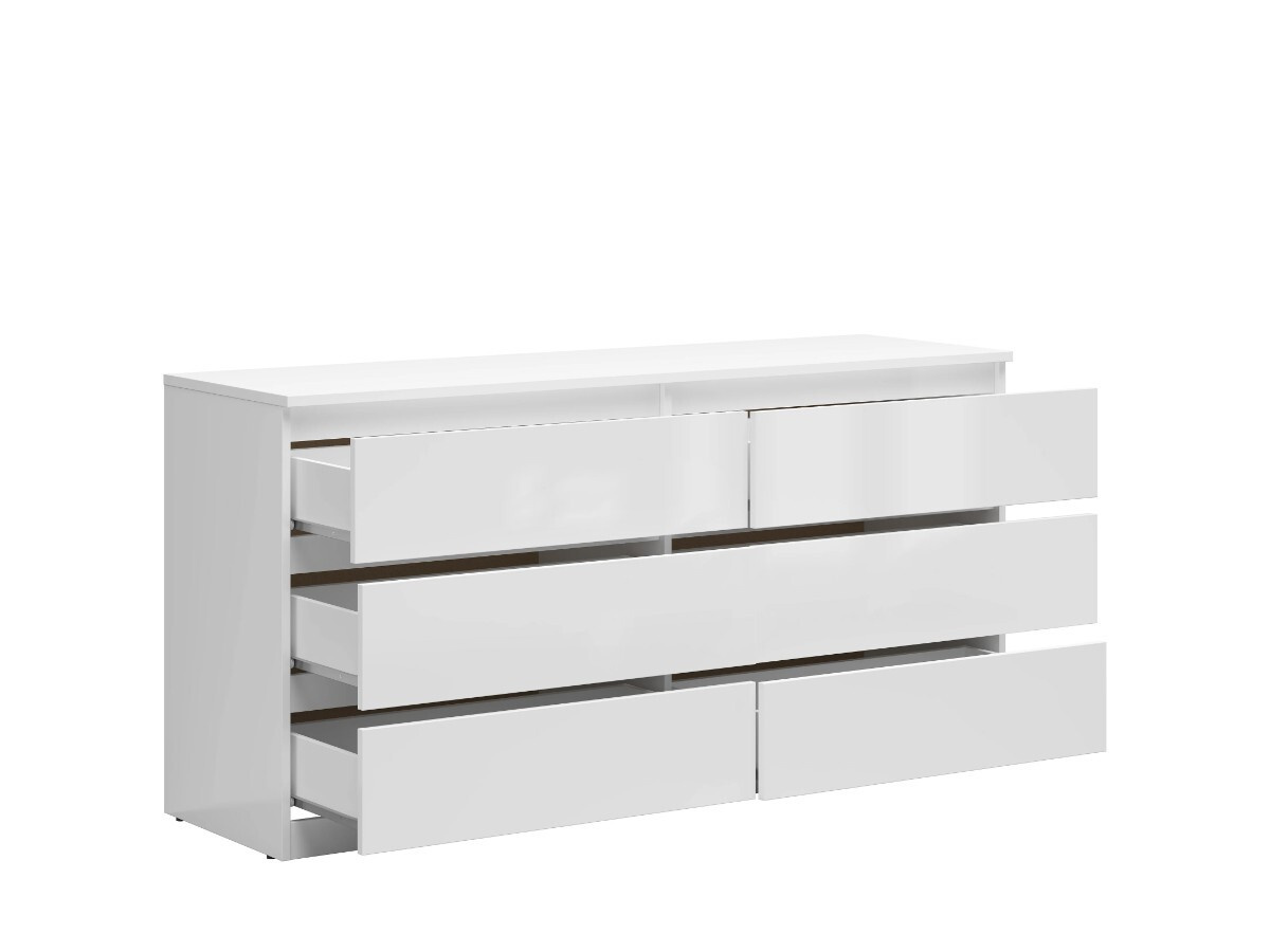 Komoda KOM6S ze systému TETRIX - s šesti šuplíky, vyrábí se z kvalitního lamina v barevném provedení bílá lesk, max. zatížení šuplíku 4 kg.