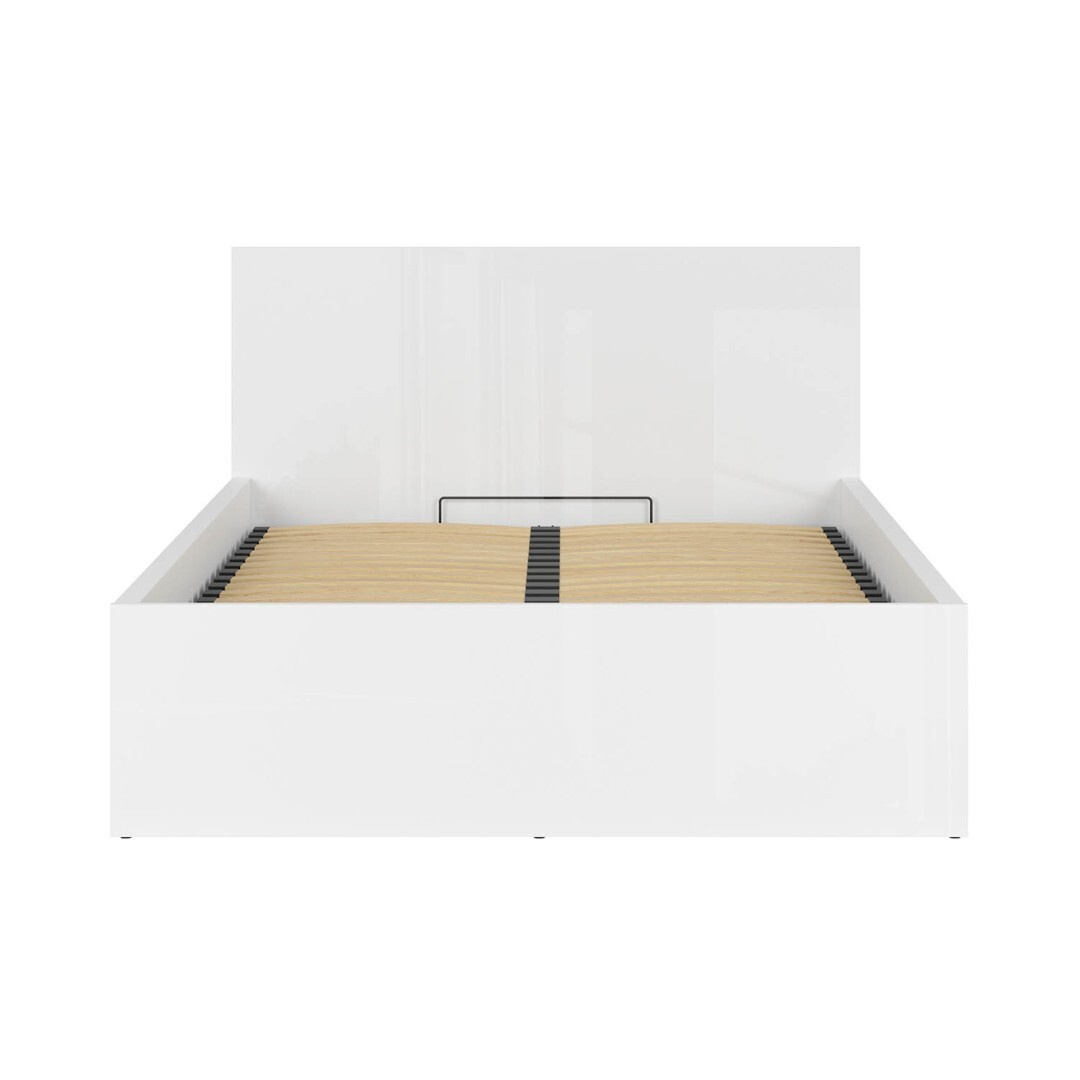 Postel 160 x 200 cm ze systému TETRIX - s úložným prostorem přístupným po zvednutí lamelového roštu, který je součástí postele. Úložný prostor je rozdělen na dva boxy. Využitelná výška je 26 cm. Bočnice postele jsou vyrobeny z kvalitního lamina o síle 18 mm. Horní hrana bočnic je opticky zesílena. Čelo je vyrobeno z lamino o síle 22 mm. Barevné provedení bílá, s mírným leskem. Výška rámu postele je 40 cm. Čelo postele můžete doplnit čalouněním v šedém, černém nebo béžovém barevném provedení. Rozměr lehací plochy - matrace 160 x 200 cm.