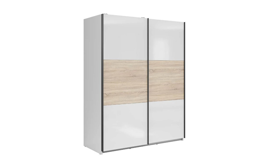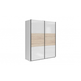 Šatní skříň SZF/153 ze systému TETRIX - kombinovaná s posuvnými dveřmi, vnitřní prostor ve skříni je rozdělen pomocí polic a dvou šatních tyčí, vyrábí se z kvalitního lamina v barevném provedení bílá lesk / dub sonoma.