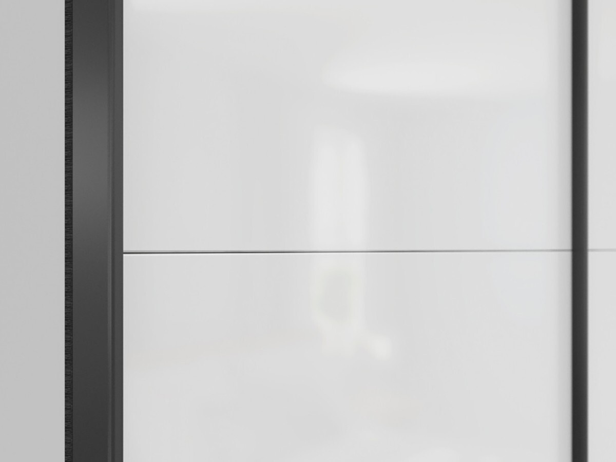 Šatní skříň SZF/153 ze systému TETRIX - kombinovaná s posuvnými dveřmi, vnitřní prostor ve skříni je rozdělen pomocí polic a dvou šatních tyčí, vyrábí se z kvalitního lamina v barevném provedení bílá lesk.
