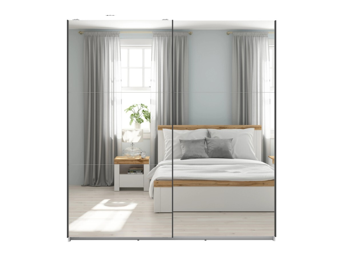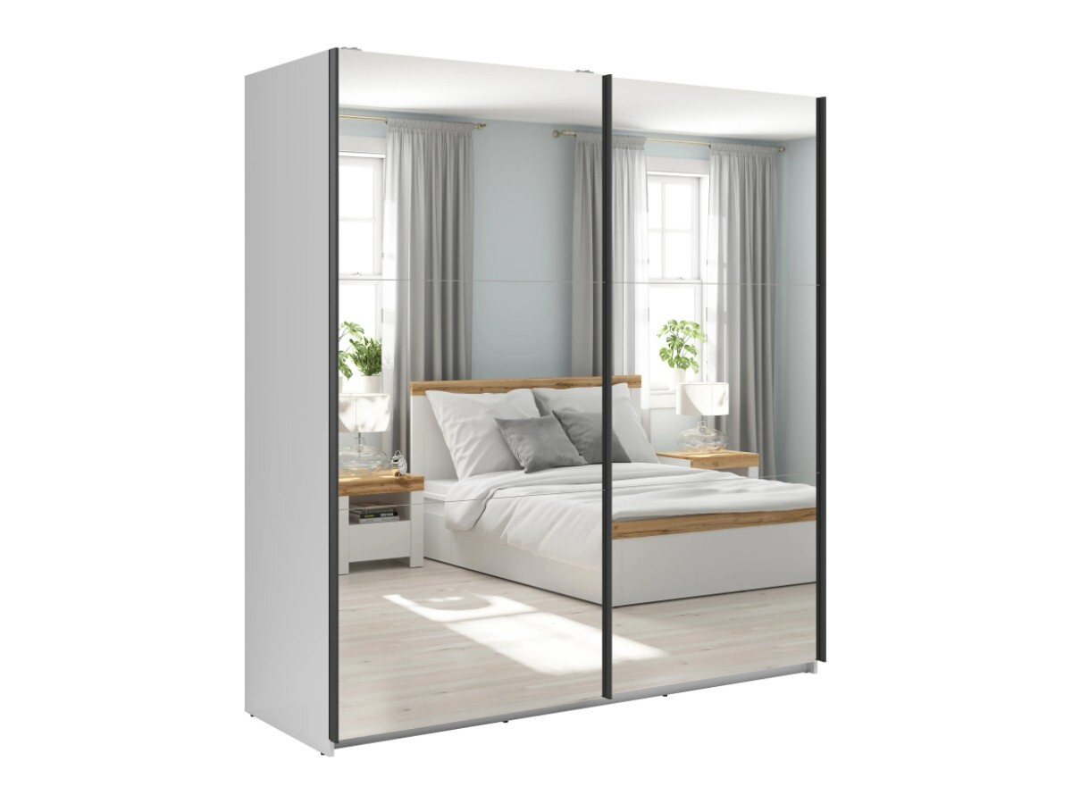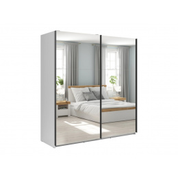 Šatní skříň SZF/183/2M ze systému TETRIX - kombinovaná s posuvnými dveřmi a se zrcadly, vnitřní prostor ve skříni je rozdělen pomocí polic a dvou šatních tyčí, vyrábí se z kvalitního lamina v barevném provedení bílá lesk.