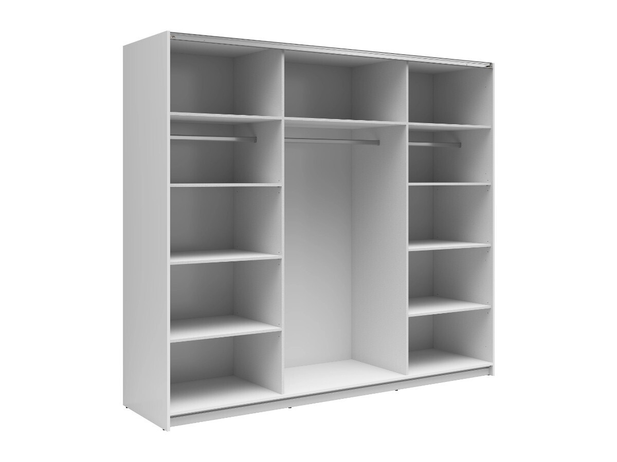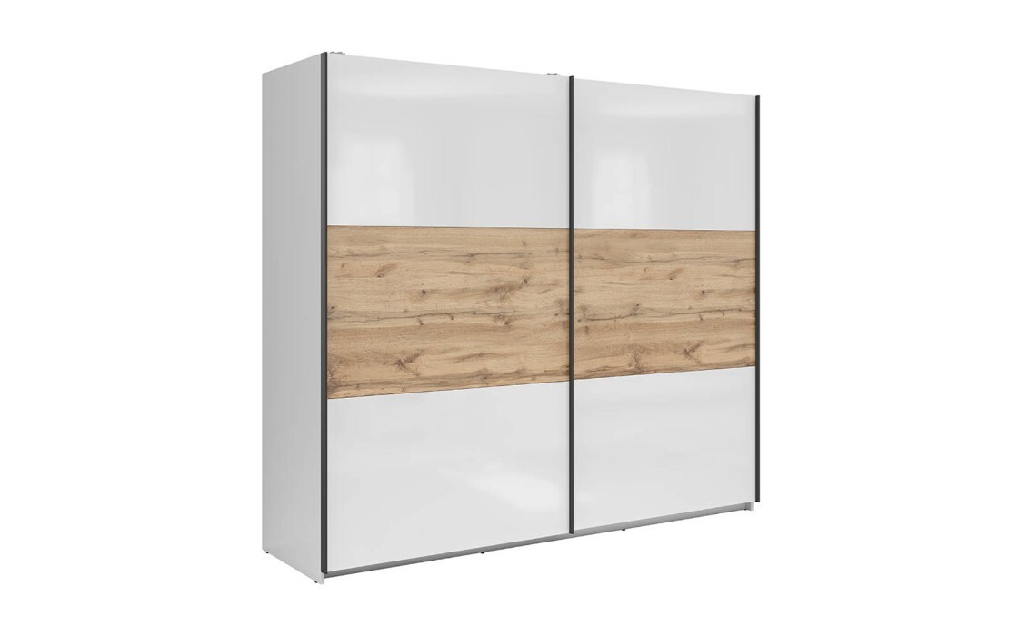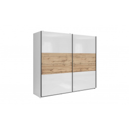 Šatní skříň SZF/220 dub votan ze systému TETRIX - kombinovaná s posuvnými dveřmi, vnitřní prostor ve skříni je rozdělen pomocí polic a tří šatních tyčí, vyrábí se z kvalitního lamina v barevném provedení bílá lesk / dub votan