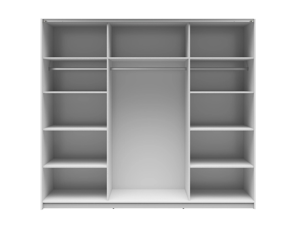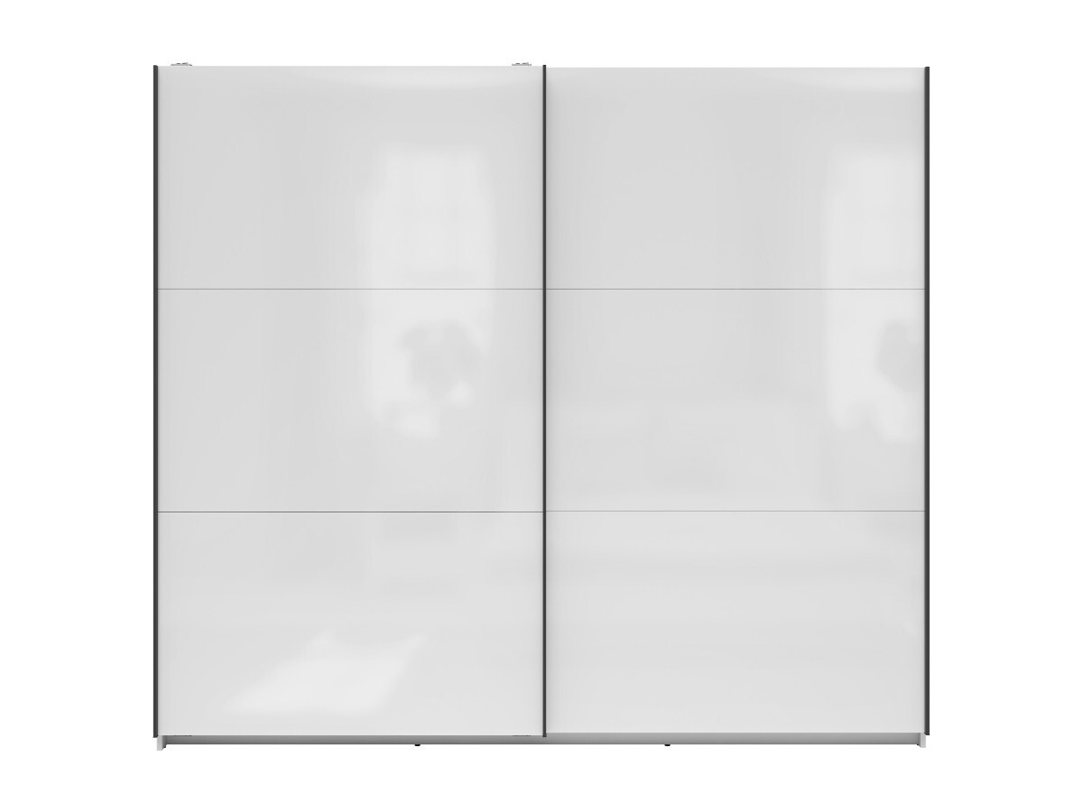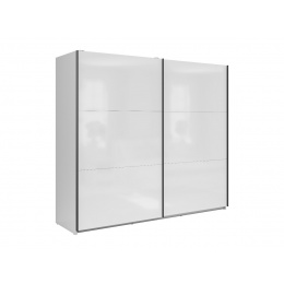 Šatní skříň SZF/220 ze systému TETRIX - kombinovaná s posuvnými dveřmi, vnitřní prostor ve skříni je rozdělen pomocí polic a tří šatních tyčí, vyrábí se z kvalitního lamina v barevném provedení bílá lesk.