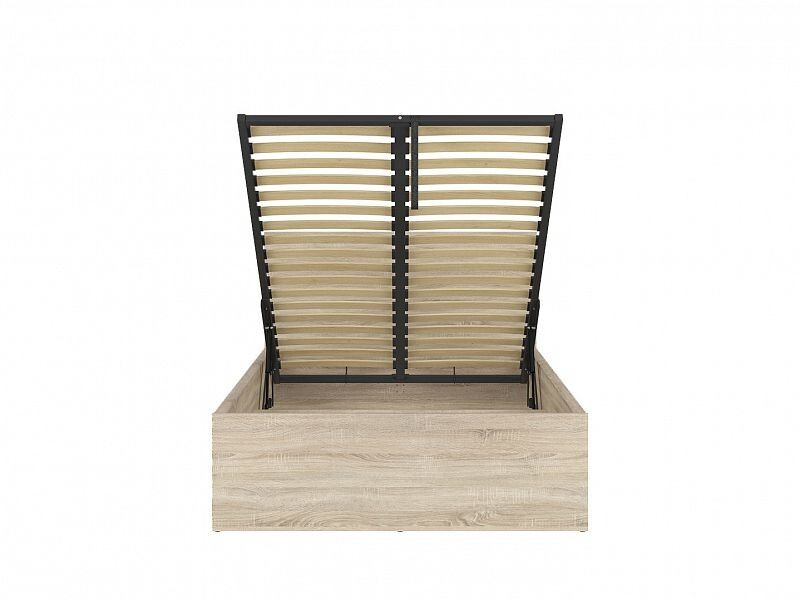 Postel 120 x 200 cm ze systému TETRIX - s úložným prostorem přístupným po zvednutí lamelového roštu, který je součástí postele. Úložný prostor je rozdělen na dva boxy. Využitelná výška je 26 cm. Bočnice postele jsou vyrobeny z kvalitního lamina o síle 18 mm. Horní hrana bočnic je opticky zesílena. Čelo je vyrobeno z lamino o síle 22 mm. Barevné provedení dub sonoma. Výška rámu postele je 40 cm. Čelo postele můžete doplnit čalouněním v šedém, černém nebo béžovém barevném provedení. Rozměr lehací plochy - matrace 120 x 200 cm.