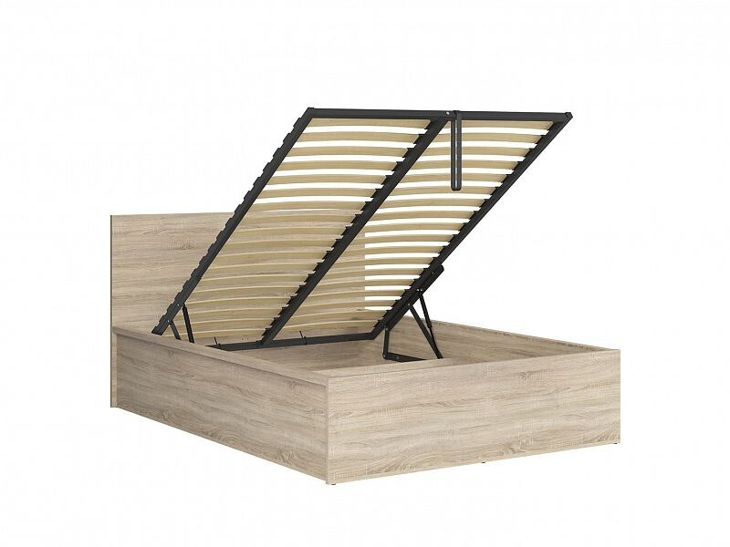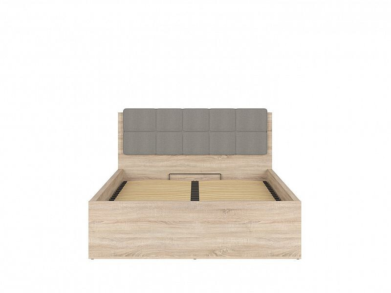 Postel 140 x 200 cm ze systému TETRIX - s úložným prostorem přístupným po zvednutí lamelového roštu, který je součástí postele. Úložný prostor je rozdělen na dva boxy. Využitelná výška je 26 cm. Bočnice postele jsou vyrobeny z kvalitního lamina o síle 18 mm. Horní hrana bočnic je opticky zesílena. Čelo je vyrobeno z lamino o síle 22 mm. Barevné provedení dub sonoma. Výška rámu postele je 40 cm. Čelo postele můžete doplnit čalouněním v šedém, černém nebo béžovém barevném provedení. Rozměr lehací plochy - matrace 140 x 200 cm.