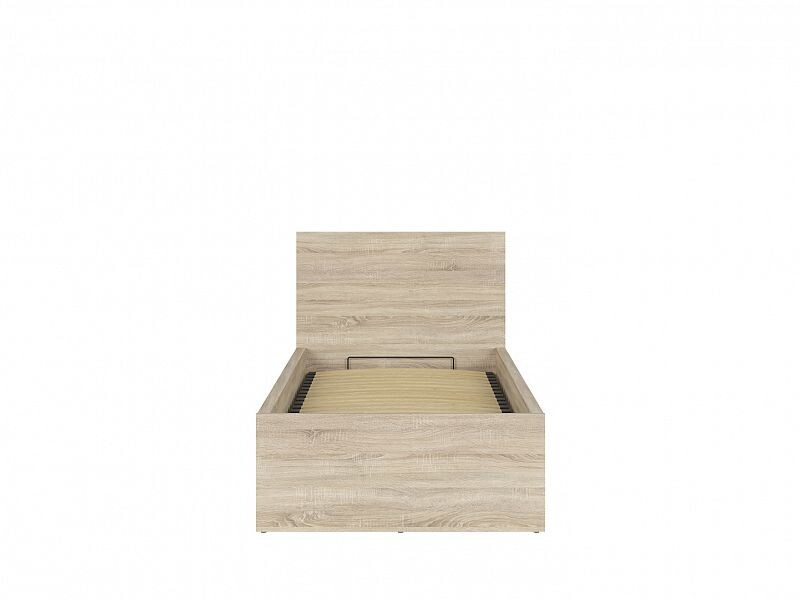 Postel 90 x 200 cm ze systému TETRIX - s úložným prostorem přístupným po zvednutí lamelového roštu, který je součástí postele. Úložný prostor je rozdělen na dva boxy. Využitelná výška je 26 cm. Bočnice postele jsou vyrobeny z kvalitního lamina o síle 18 mm. Horní hrana bočnic je opticky zesílena. Čelo je vyrobeno z lamino o síle 22 mm. Barevné provedení dub sonoma. Výška rámu postele je 40 cm. Čelo postele můžete doplnit čalouněním v šedém, černém nebo béžovém barevném provedení. Rozměr lehací plochy - matrace 90 x 200 cm.
