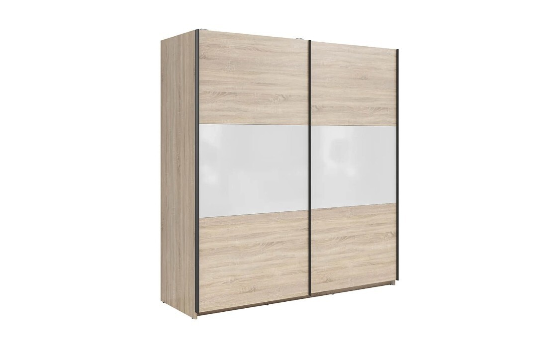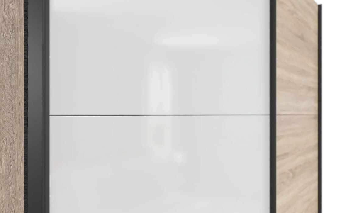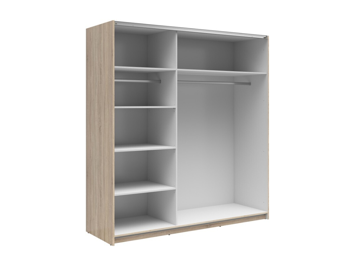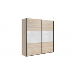 Šatní skříň SZF/183 ze systému TETRIX - kombinovaná s posuvnými dveřmi, vnitřní prostor ve skříni je rozdělen pomocí polic a dvou šatních tyčí, vyrábí se z kvalitního lamina v barevném provedení dub sonoma / bílá.