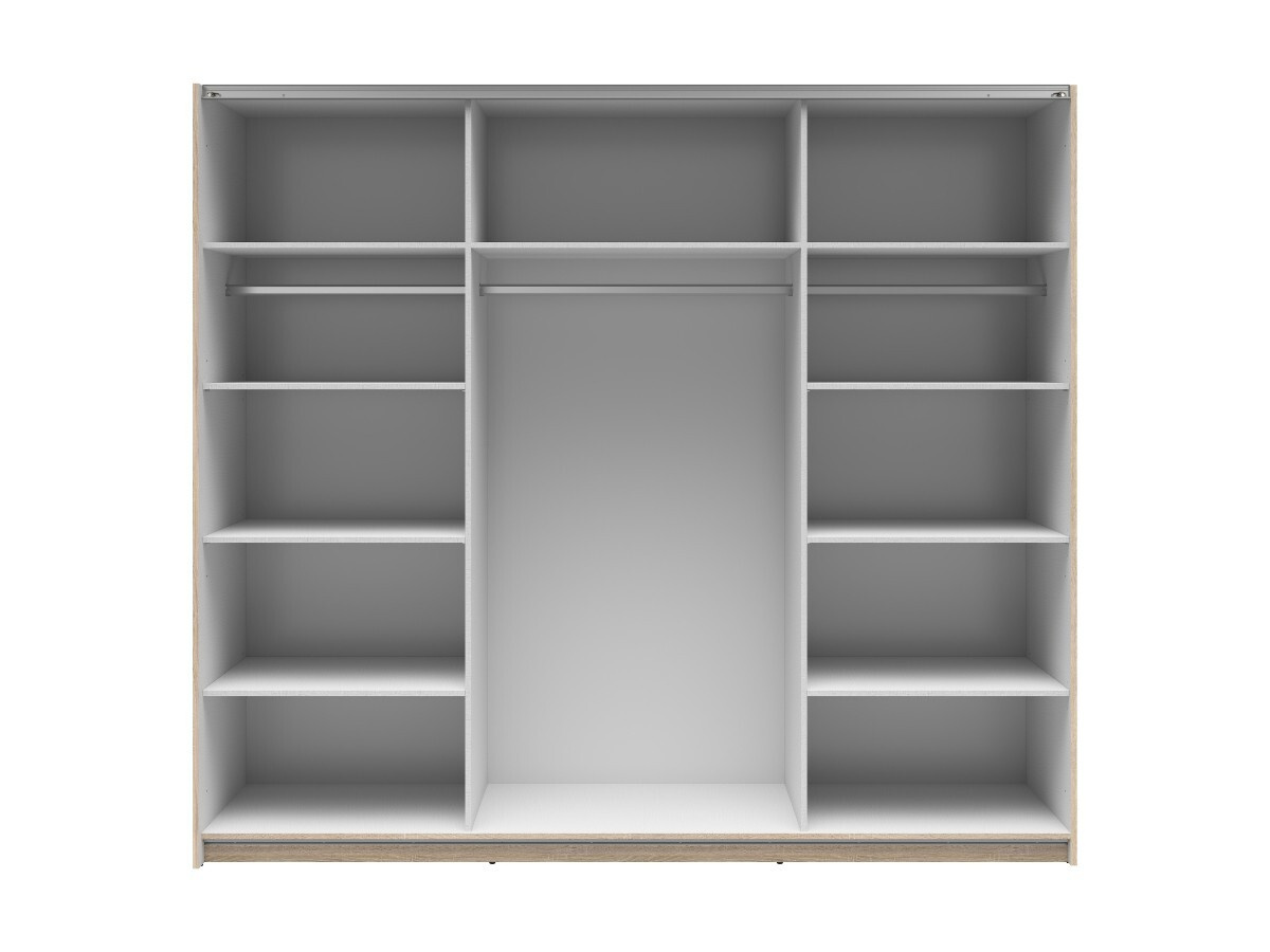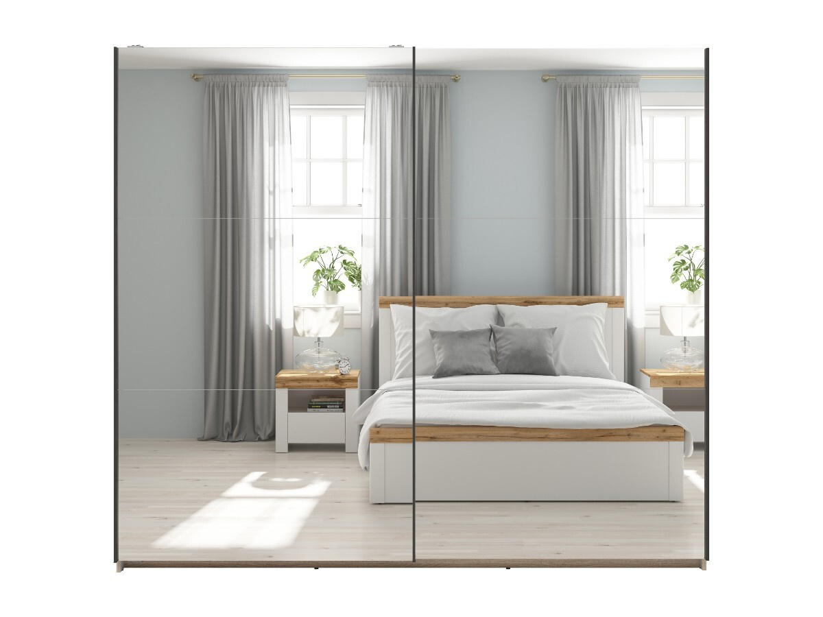 Šatní skříň SZF/220/2M ze systému TETRIX - kombinovaná s posuvnými dveřmi a se zrcadly, vnitřní prostor ve skříni je rozdělen pomocí polic a tří šatních tyčí, vyrábí se z kvalitního lamina v barevném provedení dub sonoma.