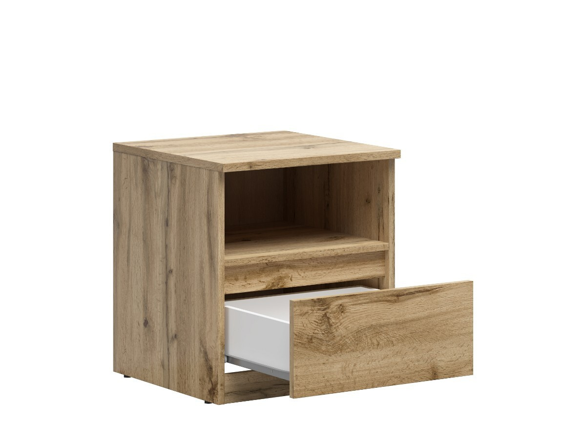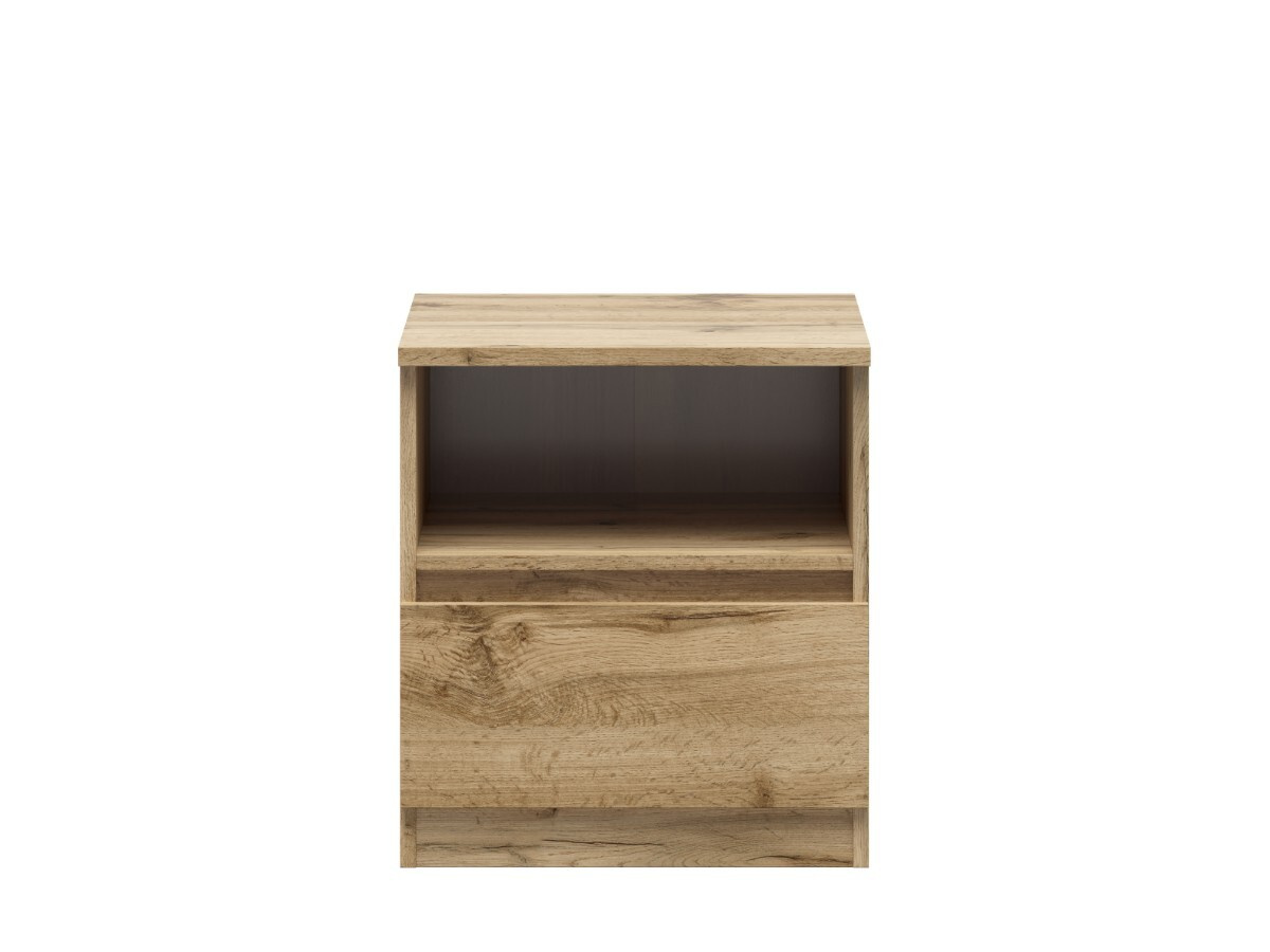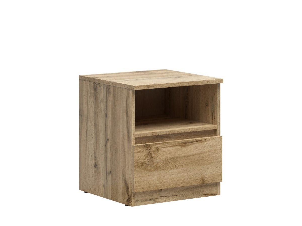 Noční stolek KOM1S ze systému TETRIX - s otevřenou odkládací nikou a šuplíkem, vyrábí se z kvalitního lamina v barvě dub votan.