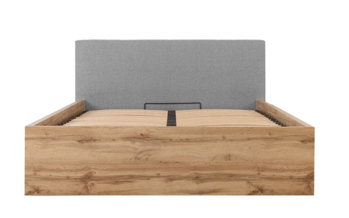 Postel 140 x 200 cm ze systému TETRIX - s úložným prostorem přístupným po zvednutí lamelového roštu, který je součástí postele. Úložný prostor je rozdělen na dva boxy. Využitelná výška je 26 cm. Bočnice postele jsou vyrobeny z kvalitního lamina o síle 18 mm. Horní hrana bočnic je opticky zesílena. Čelo je vyrobeno z lamino o síle 22 mm. Barevné provedení dub votan. Čelo je očalouněno potahovou látkou Inari 91. Výška rámu postele je 40 cm. Rozměr lehací plochy - matrace 140 x 200 cm.