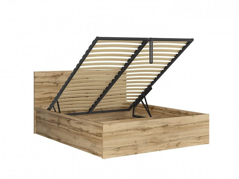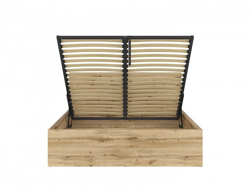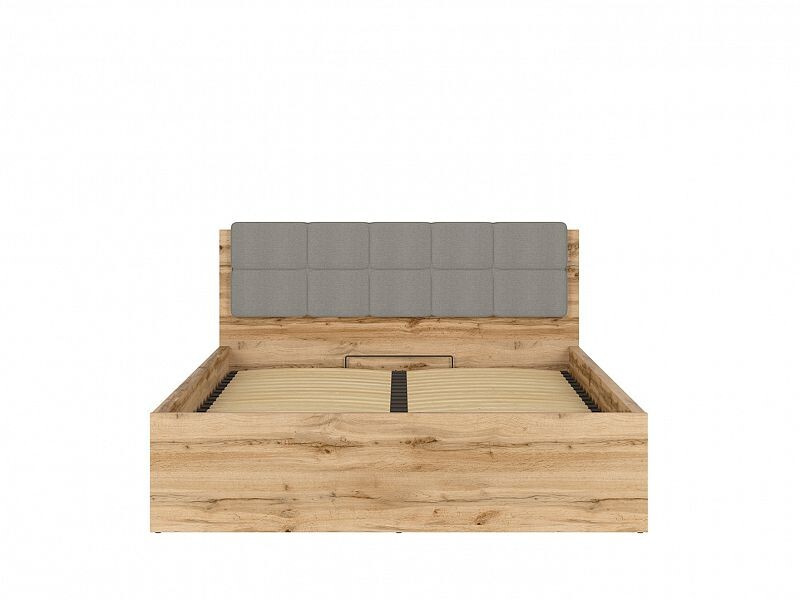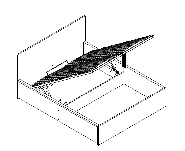 Postel 160 x 200 cm ze systému TETRIX - s úložným prostorem přístupným po zvednutí lamelového roštu, který je součástí postele. Úložný prostor je rozdělen na dva boxy. Využitelná výška je 26 cm. Bočnice postele jsou vyrobeny z kvalitního lamina o síle 18 mm. Horní hrana bočnic je opticky zesílena. Čelo je vyrobeno z lamino o síle 22 mm. Barevné provedení dub votan. Výška rámu postele je 40 cm. Čelo postele můžete doplnit čalouněním v šedém, černém nebo béžovém barevném provedení. Rozměr lehací plochy - matrace 160 x 200 cm.