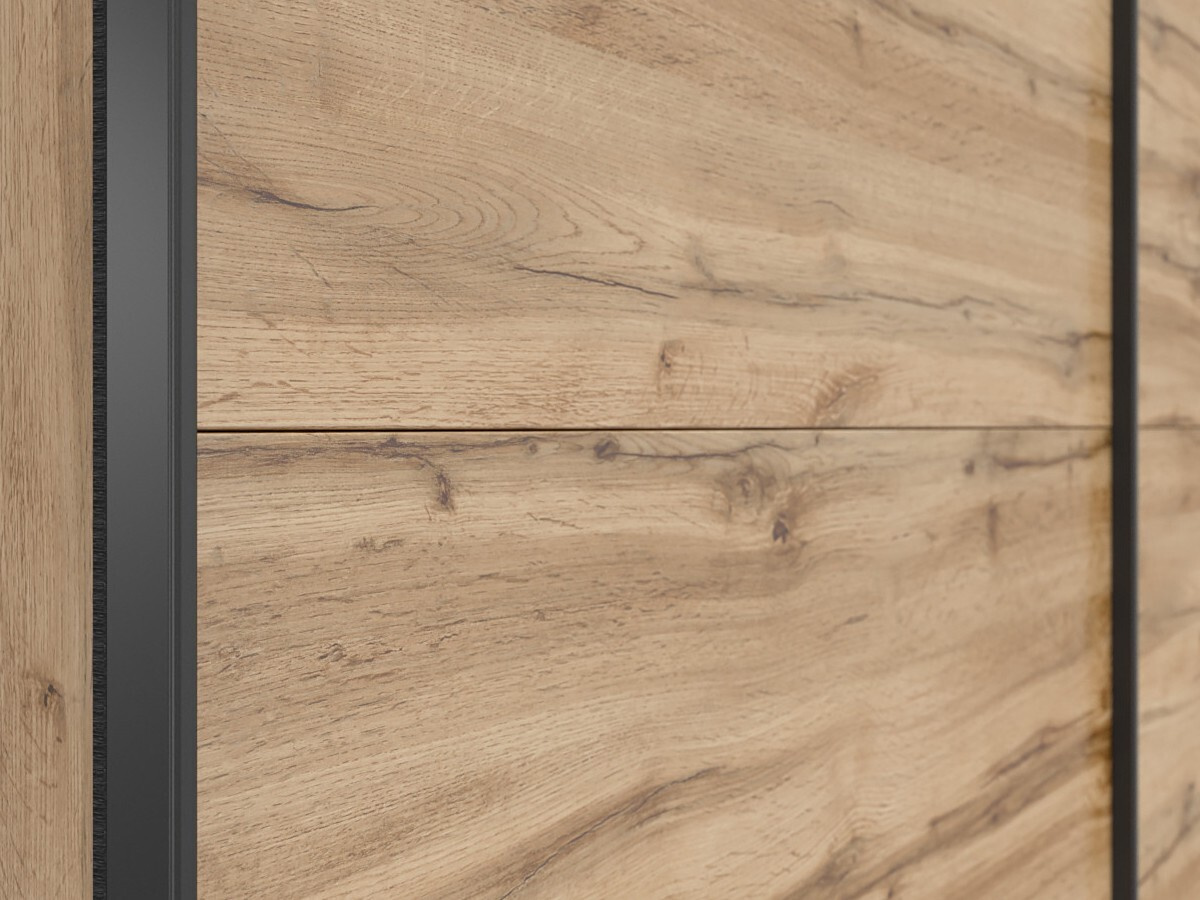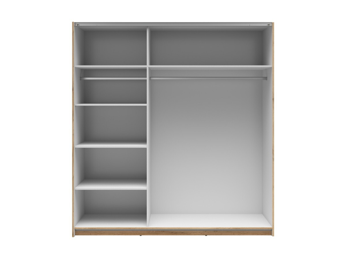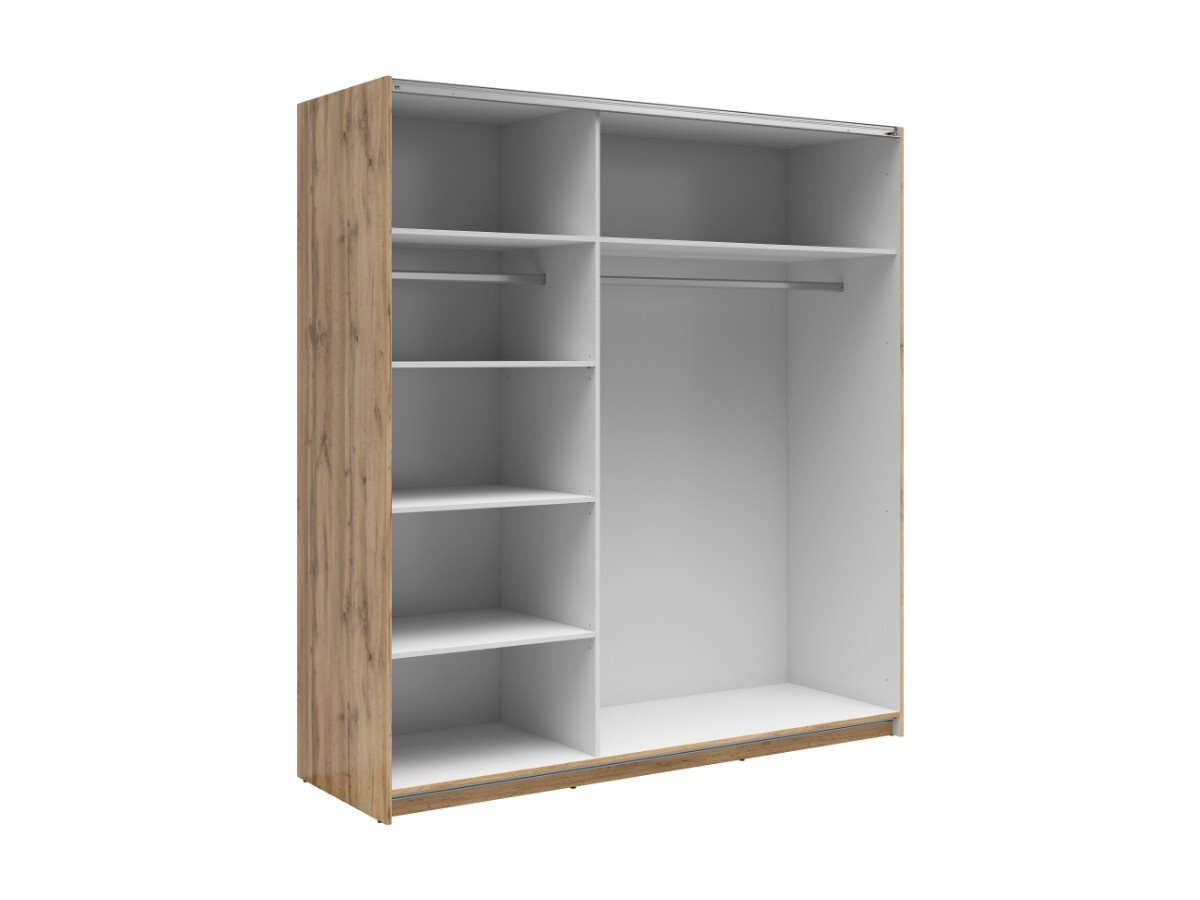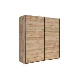 Šatní skříň SZF/183 ze systému TETRIX - kombinovaná s posuvnými dveřmi, vnitřní prostor ve skříni je rozdělen pomocí polic a dvou šatních tyčí, vyrábí se z kvalitního lamina v barevném provedení dub votan.