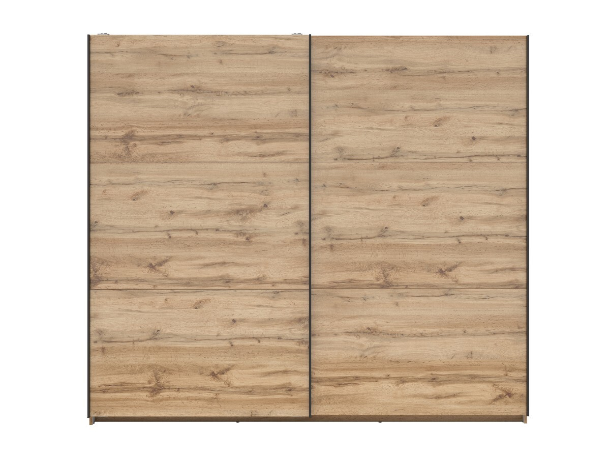 Šatní skříň SZF/220 ze systému TETRIX - kombinovaná s posuvnými dveřmi, vnitřní prostor ve skříni je rozdělen pomocí polic a tří šatních tyčí, vyrábí se z kvalitního lamina v barevném provedení dub votan.