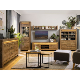 Zajímavá elegance s originálním designem v příjemné barvě dřeva dub ribbeck – to je kolekce TORIN. Jedinečný design nábytku dodává okrasná lišta. Jednotlivé složky kolekce TORIN jsou opatřené tichým dovíráním dvířek, což zpříjemňuje jejich používání. Součástí jsou kovové úchytky a LED osvětlení v dekorační rýhované liště.