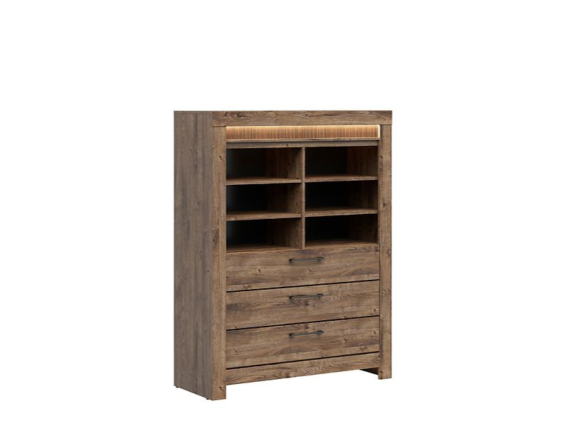 Zajímavá elegance s originálním designem v příjemné barvě dřeva dub ribbeck – to je kolekce TORIN. Jedinečný design nábytku dodává okrasná lišta. Jednotlivé složky kolekce TORIN jsou opatřené tichým dovíráním dvířek, což zpříjemňuje jejich používání. Součástí jsou kovové úchytky a LED osvětlení v dekorační rýhované liště.