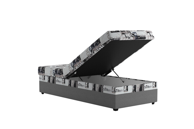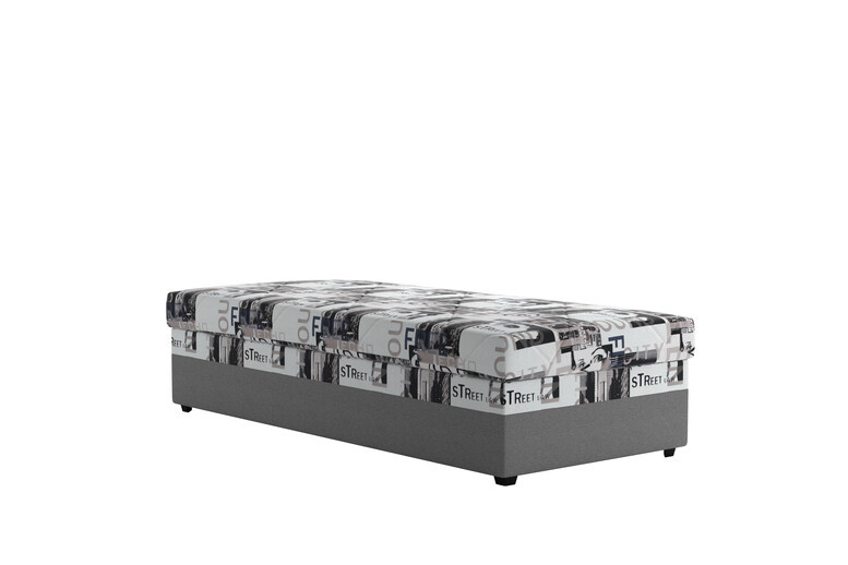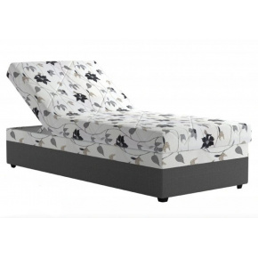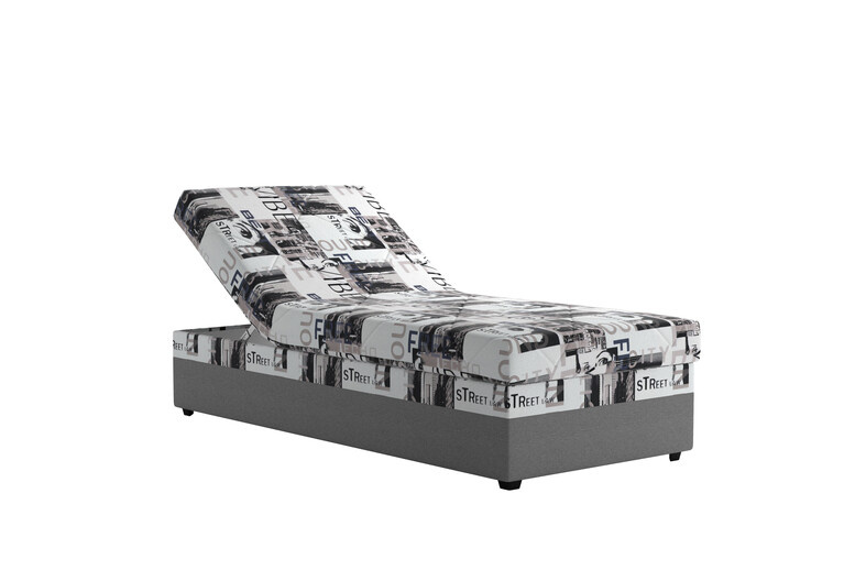 Polohovací válenda EVELÍNA s kvalitní matrací z elastické PUR pěny, uloženou na polohovacím lamelovém roštu - polohování hlavy a nohou. Prostorný úložný prostor je přístupný od nohou postele pomocí plynových pístů. Předností postele EVELÍNA je zvýšená výška ložné plochy, která umožňuje pohodlné vstávání z postele bez namáhání kloubů. Ložná plocha postele je 90x200cm. Kvalitní postel od ČESKÉHO VÝROBCE. Potahová látka v kombinaci CITY B05 / TORENO grey.