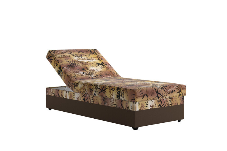 Polohovací válenda EVELÍNA s kvalitní matrací z elastické PUR pěny, uloženou na polohovacím lamelovém roštu - polohování hlavy a nohou. Prostorný úložný prostor je přístupný od nohou postele pomocí plynových pístů. Předností postele EVELÍNA je zvýšená výška ložné plochy, která umožňuje pohodlné vstávání z postele bez namáhání kloubů. Ložná plocha postele je 90x200cm. Kvalitní postel od ČESKÉHO VÝROBCE. Potahová látka, kombinace - GRAFITYS A1/MOLISOFT 45