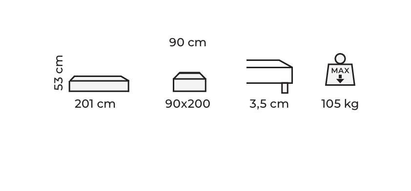 Lehací plocha: 90 x 200 cm