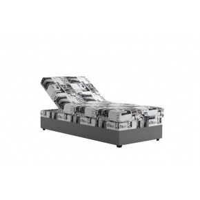 Polohovací válenda EVELÍNA s kvalitní matrací z elastické PUR pěny, uloženou na polohovacím lamelovém roštu - polohování hlavy a nohou. Prostorný úložný prostor je přístupný od nohou postele pomocí plynových pístů. Předností postele EVELÍNA je zvýšená výška ložné plochy, která umožňuje pohodlné vstávání z postele bez namáhání kloubů. Ložná plocha postele je 90x200cm. Kvalitní postel od ČESKÉHO VÝROBCE. Potahová látka v kombinaci NYC B05 / ALCON 14 black.