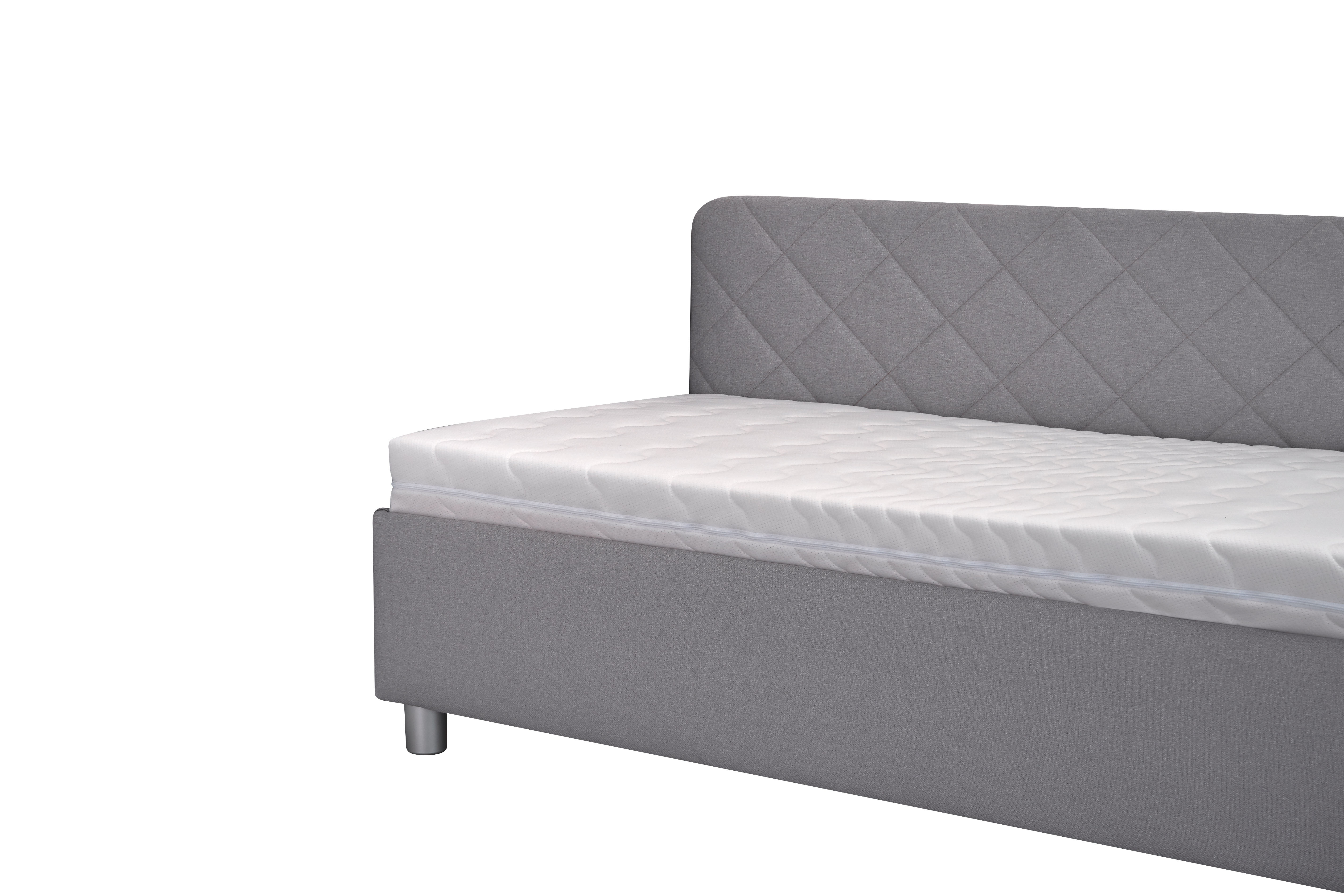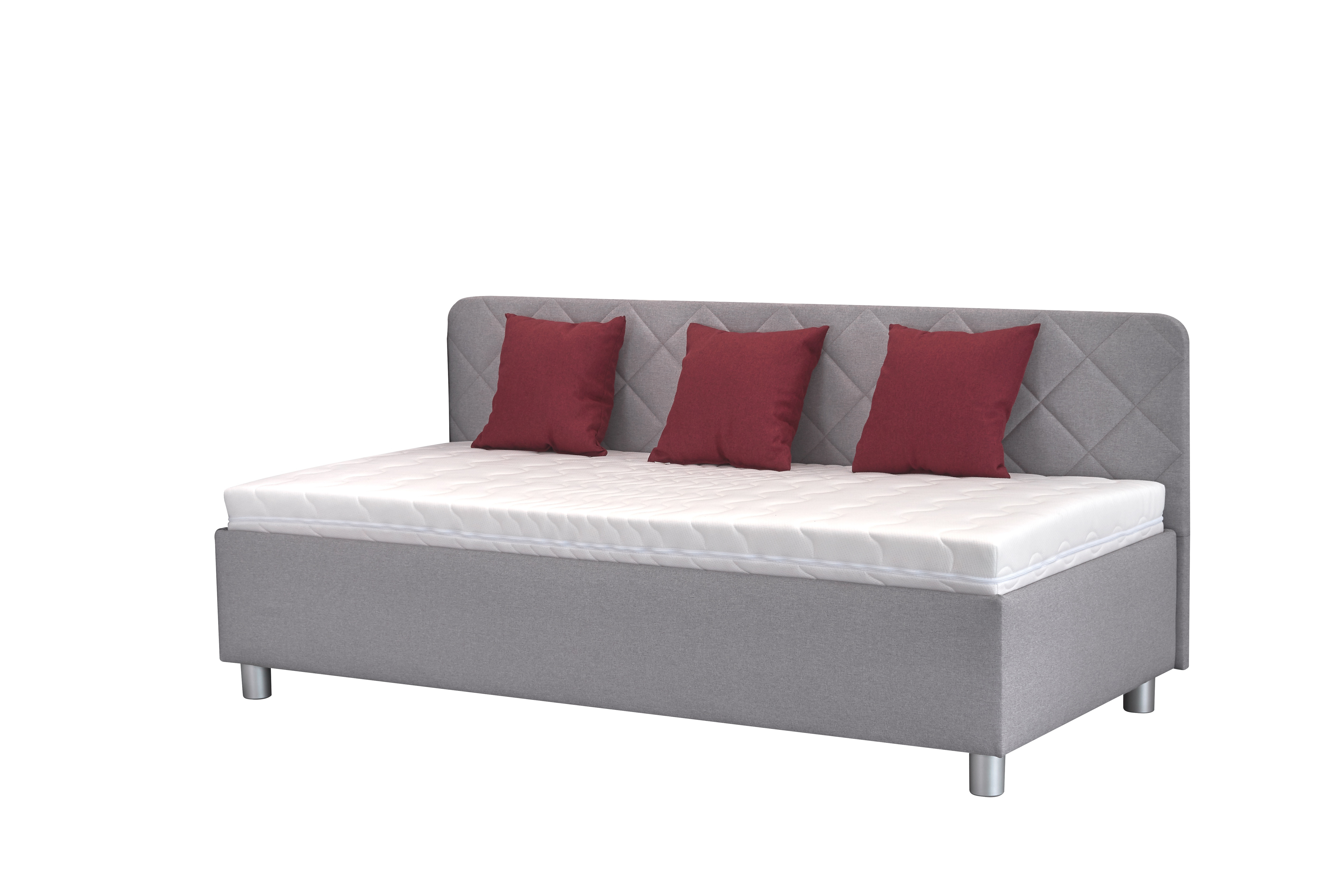| Kvalitní postel FIONA s polohovacím lamelovým roštem ( 7 poloh pro polohování hlavy + 1 poloha polohování nohou), 28 lamel, nastavení tuhosti a s popruhem proti přetížení). Úložný prostor přístupný od nohou pomocí plynových pístů. Postel je dodávána v těchto potahových látkách - Malmo 83, Malmo 95 Výška lehací plochy: cca 53 cm ( dle zvolené matrace ) K válendě FIONA lze dokoupit i krátké čelo. Čela jsou jednostranně čalouněné. Za příplatek možno vyrobit i oboustranně čalouněná čela. Popřípadě můžete objednat postel i bez čel. Matrace NELLY z kvalitních pěn vyrobena bez použití lepidel. Jádro je složeno z desek z polyuretanových pěn o nižší [žlutá pěna] a vyšší [růžová pěna] tuhosti, což umožňuje výběr měkčí a tvrdší strany matrace. Výška matrace v potahu je cca 15 cm. Matrace je opatřena snímatelným potahem. Doporučená nosnost do 110kg.