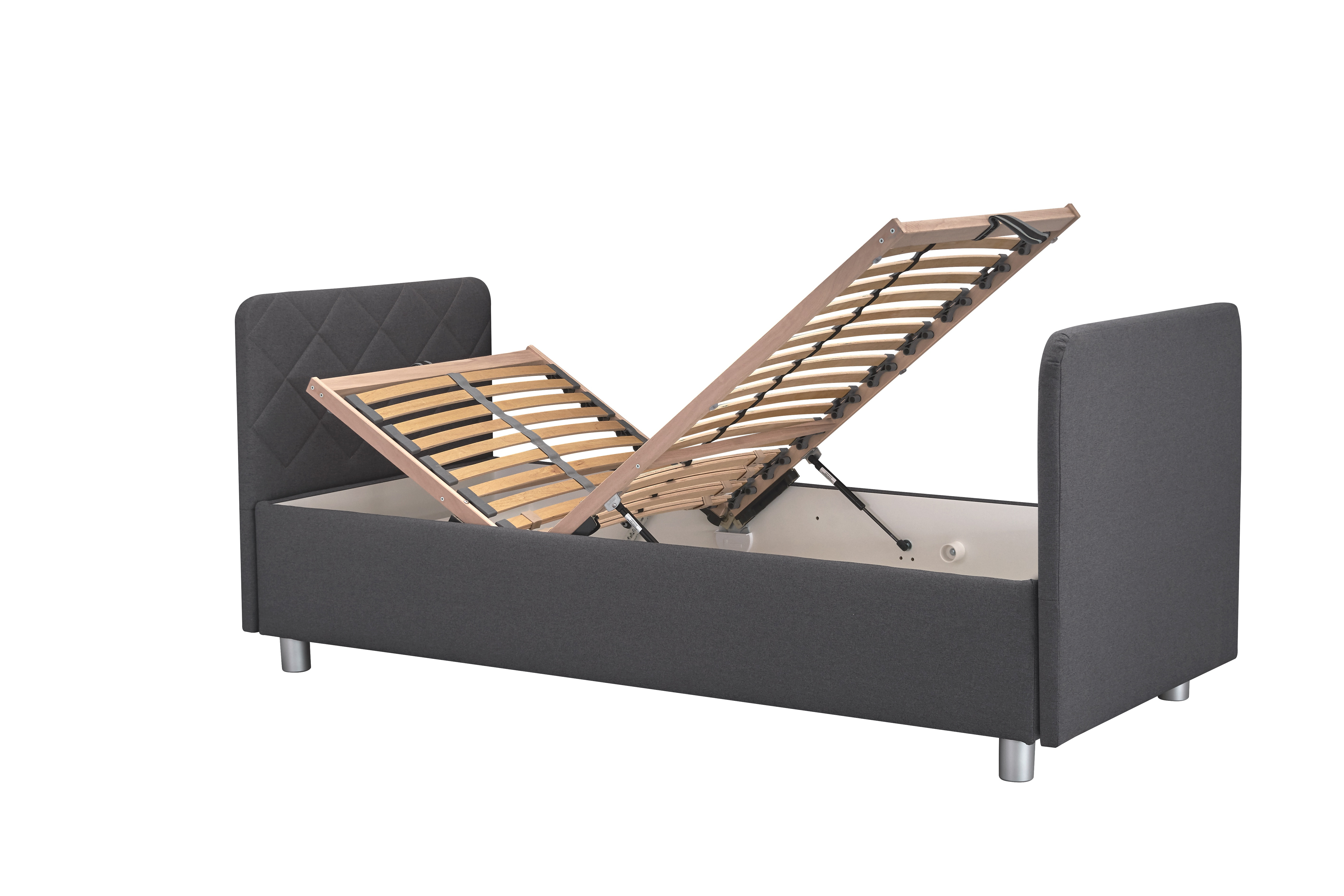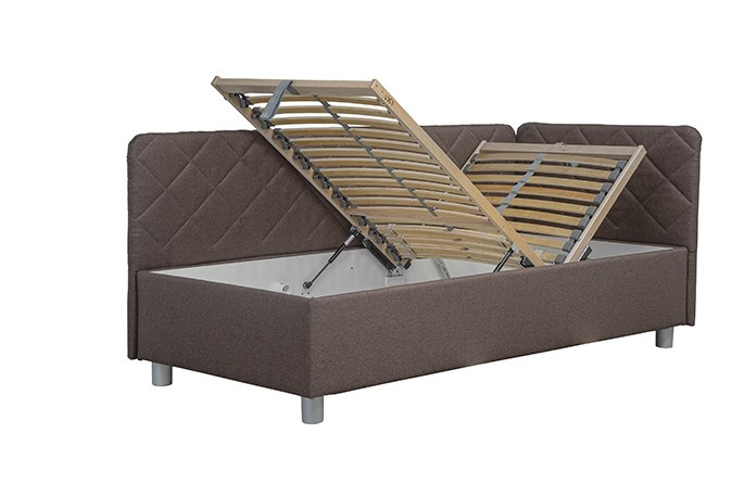 | Kvalitní postel FIONA s polohovacím lamelovým roštem ( 7 poloh pro polohování hlavy + 1 poloha polohování nohou), 28 lamel, nastavení tuhosti a s popruhem proti přetížení). Úložný prostor přístupný od nohou pomocí plynových pístů. Za příplatek je možno doobjednat rošt s elektrickým polohováním hlavy. Postel je dodávána v těchto potahových látkách - Malmo 26 hnědá Výška lehací plochy: cca 53 cm ( dle zvolené matrace ) K válendě FIONA lze dokoupit krátké i dlouhé čelo. Čela jsou jednostranně čalouněné. Za příplatek možno objednat oboustranně čalouněná čela. Matrace NELLY z kvalitních pěn vyrobena bez použití lepidel. Jádro je složeno z desek z polyuretanových pěn o nižší [žlutá pěna] a vyšší [růžová pěna] tuhosti, což umožňuje výběr měkčí a tvrdší strany matrace. Výška matrace v potahu je cca 15 cm. Matrace je opatřena snímatelným potahem. Doporučená nosnost do 110kg.