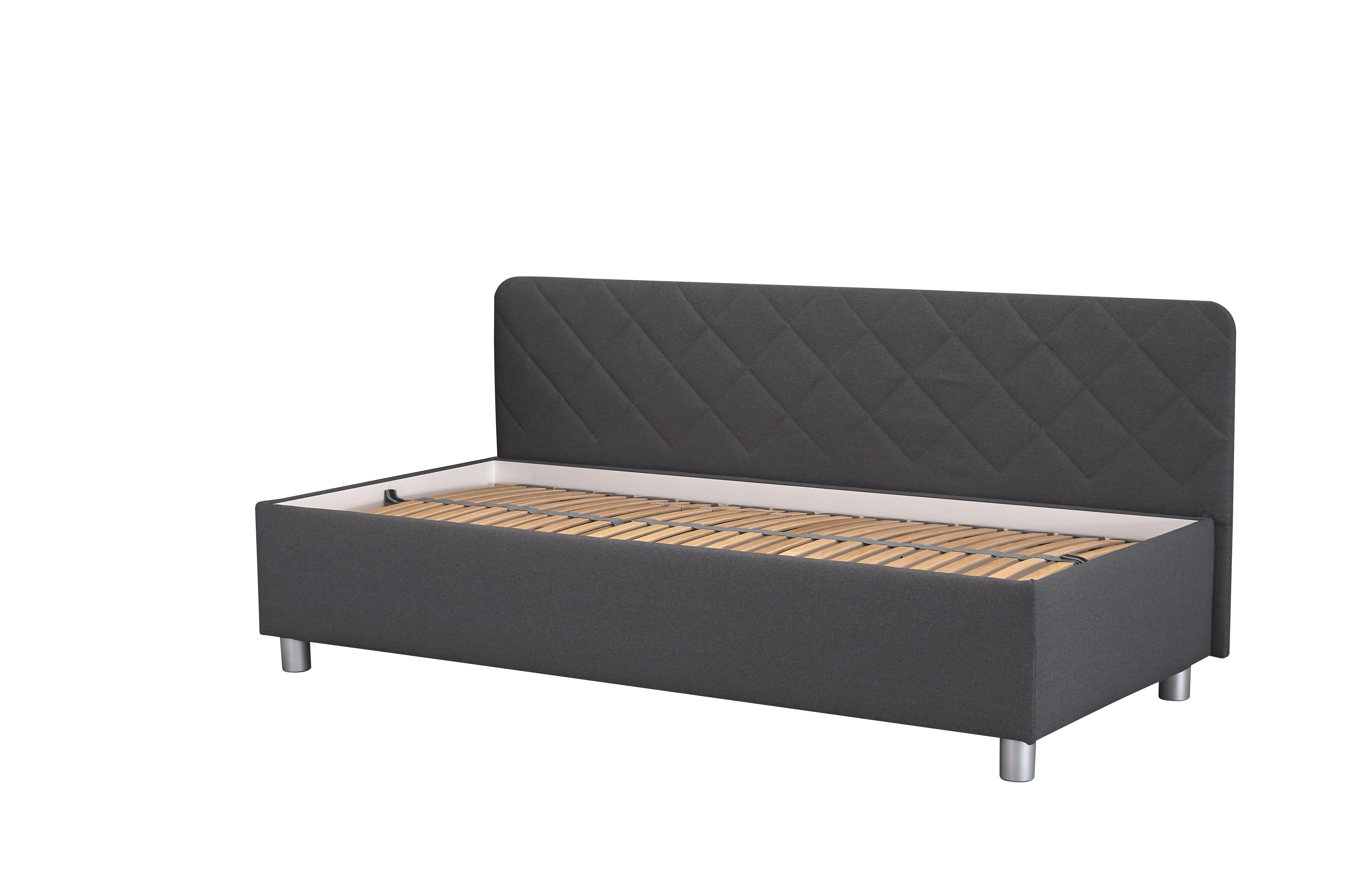 | Kvalitní postel FIONA s polohovacím lamelovým roštem ( 7 poloh pro polohování hlavy + 1 poloha polohování nohou), 28 lamel, nastavení tuhosti a s popruhem proti přetížení). Úložný prostor přístupný od nohou pomocí plynových pístů. Za příplatek je možno doobjednat rošt s elektrickým polohováním hlavy. Postel je dodávána v těchto potahových látkách - Malmo 26 hnědá Výška lehací plochy: cca 53 cm ( dle zvolené matrace ) K válendě FIONA lze dokoupit krátké i dlouhé čelo. Čelo krátké 90 cm je jednostranně čalouněné. Čelo dlouhé 200 cm je jednostranně čalouněné. Za příplatek možno očalounit čela oboustranně. Matrace NELLY z kvalitních pěn vyrobena bez použití lepidel. Jádro je složeno z desek z polyuretanových pěn o nižší [žlutá pěna] a vyšší [růžová pěna] tuhosti, což umožňuje výběr měkčí a tvrdší strany matrace. Výška matrace v potahu je cca 15 cm. Matrace je opatřena snímatelným potahem. Doporučená nosnost do 110kg.