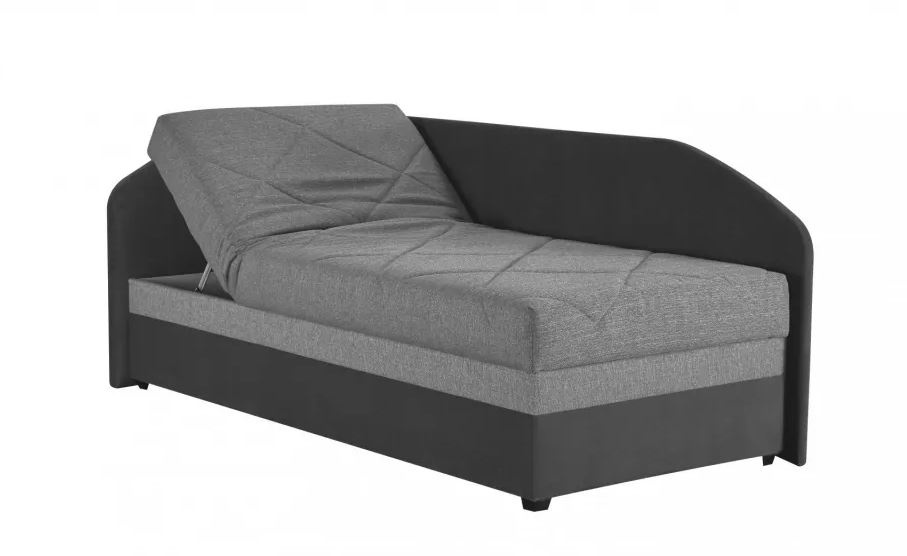 Moderní rohová polohovací válenda s čely TURI s kvalitní matrací z elastické PUR pěny, uloženou na polohovacím lamelovém roštu - polohování hlavy a nohou. Prostorný úložný prostor je přístupný od nohou postele pomocí plynových pístů. Předností postele TURI je zvýšená výška ložné plochy, která umožňuje pohodlné vstávání z postele bez namáhání kloubů. Ložná plocha postele je 90x200cm. Rohovou válendu TURI si můžete vybrat v levém nebo pravém provedení. Kvalitní postel od ČESKÉHO VÝROBCE.