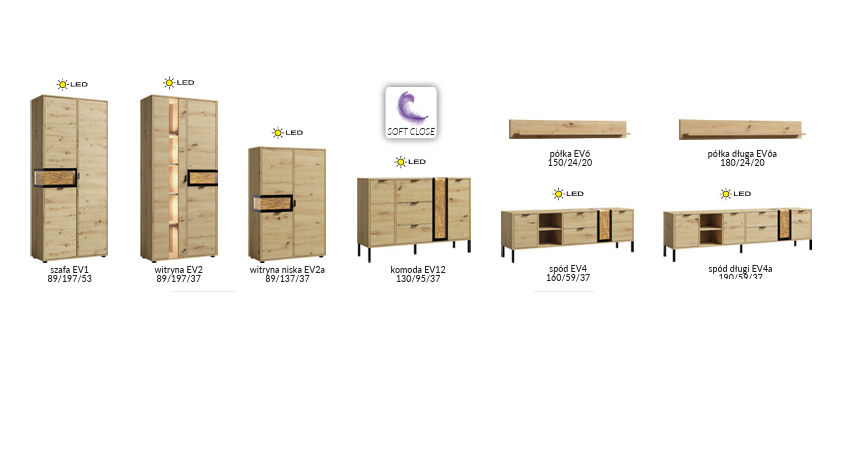 Systémový nábytek VALETA je vynikající volba pro sestavení moderního obývacího pokoje v atraktivním barevném provedení. Systém VALETA se skládá ze 7 jednotlivých prvků, které můžete mezi sebou vzájemně kombinovat a vytvořit tak ideální sestavu. Korpus nábytku je vyroben z kvalitního lamina v dekoru dub artisan, čelní plochy dvířek a šuplíků jsou z MDF v dekoru dub artisan s výrazným dekorativním prvkem z přírodního dřeva s LED osvětlením. Skříňky jsou doplněny systémem tichého dovírání.