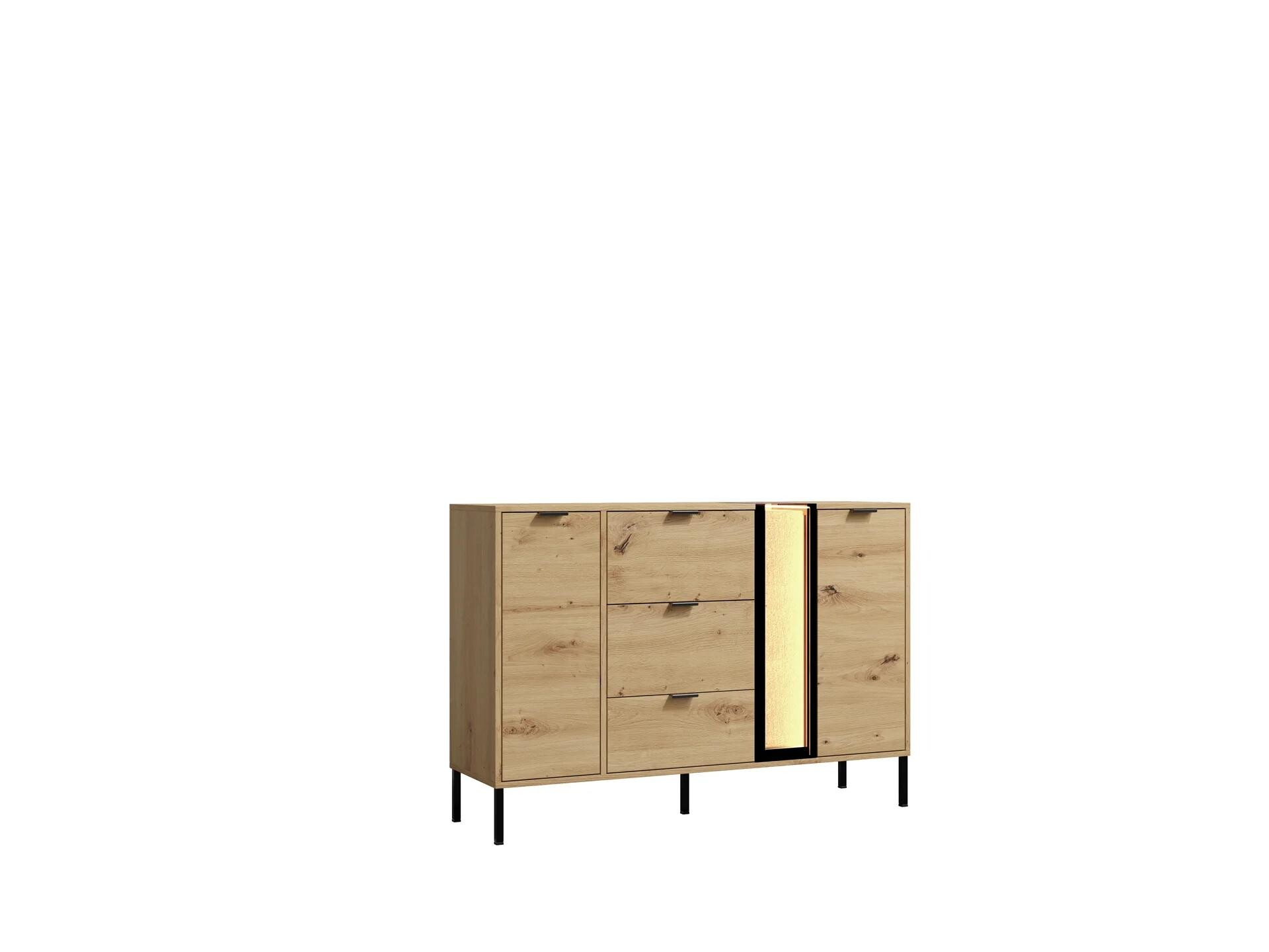 Systémový nábytek VALETA je vynikající volba pro sestavení moderního obývacího pokoje v atraktivním barevném provedení. Systém VALETA se skládá ze 7 jednotlivých prvků, které můžete mezi sebou vzájemně kombinovat a vytvořit tak ideální sestavu. Korpus nábytku je vyroben z kvalitního lamina v dekoru dub artisan, čelní plochy dvířek a šuplíků jsou z MDF v dekoru dub artisan s výrazným dekorativním prvkem z přírodního dřeva s LED osvětlením. Skříňky jsou doplněny systémem tichého dovírání.
