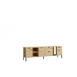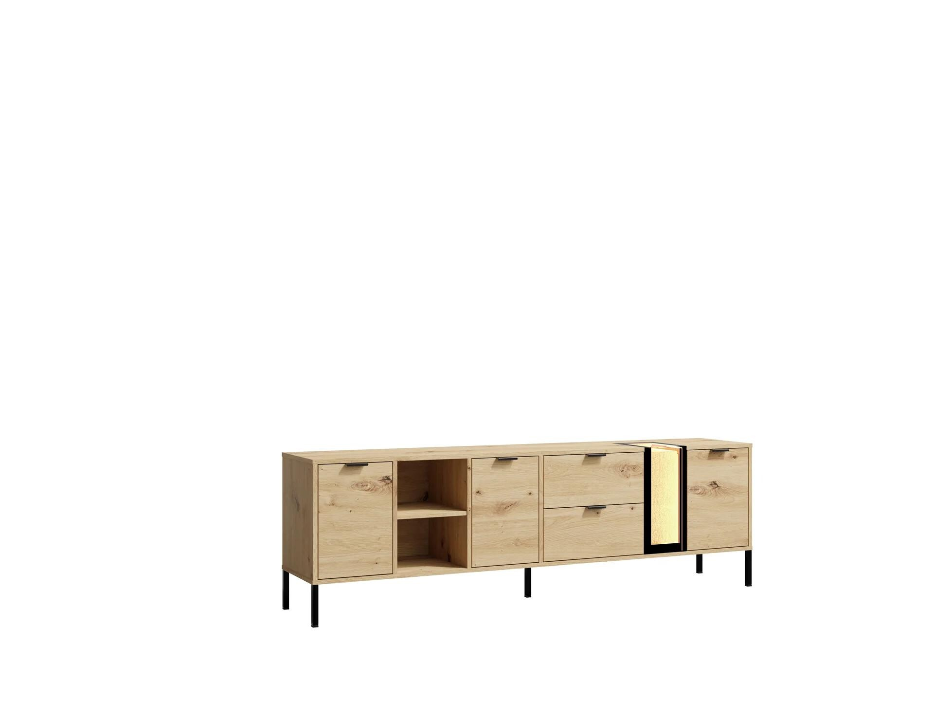 Systémový nábytek VALETA je vynikající volba pro sestavení moderního obývacího pokoje v atraktivním barevném provedení. Systém VALETA se skládá ze 7 jednotlivých prvků, které můžete mezi sebou vzájemně kombinovat a vytvořit tak ideální sestavu. Korpus nábytku je vyroben z kvalitního lamina v dekoru dub artisan, čelní plochy dvířek a šuplíků jsou z MDF v dekoru dub artisan s výrazným dekorativním prvkem z přírodního dřeva s LED osvětlením. Skříňky jsou doplněny systémem tichého dovírání.