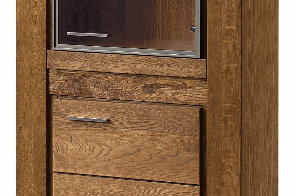 Moderní a elegantní nábytek VANCO se stane ozdobou vašeho bytu nebo domu. Je určený pro milovníky přírodních tónů a dekorů. Jde o elegantní nábytek z luxusního masivního dřeva s 3D kartáčovaným dekoračním páskem. Barevné provedení v tónu dub rustikal. Jde o nábytek, který má za cíl podtrhnout přirozenou strukturu dřeva s viditelnými suky, mezerami, oděrkami, prohlubněmi a dalšími přírodními strukturami, které naleznete ve dřevě. Nepostradatelnou součástí a hodnotou tohoto kvalitního nábytku jsou kovové rukojeti. Nábytek VANCO má elegantní nadstandardní LED osvětlení podél hrany korpusu.