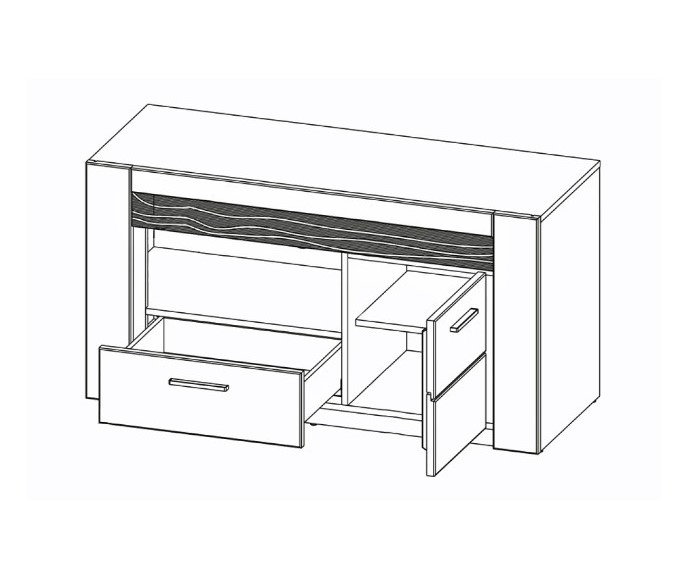 VANCO televizní stolek - plná dvířka s policí, otevřená police, spodní zásuvka, včetně LED osvětlení podél hrany korpusu (viz. foto)