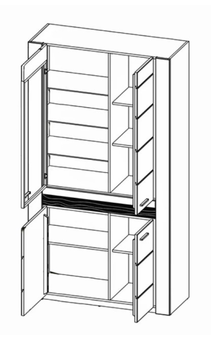 VANCO vitrína - čtyřdveřová, částečně prosklená, policová, včetně LED osvětlení podél hrany korpusu (viz. foto)