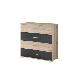Vyrobena je z lamina o síle 16 mm. Hrany komody jsou opatřeny ABS pro zvýšení odolnosti a životnosti nábytku.