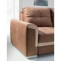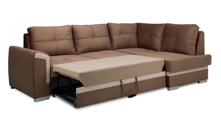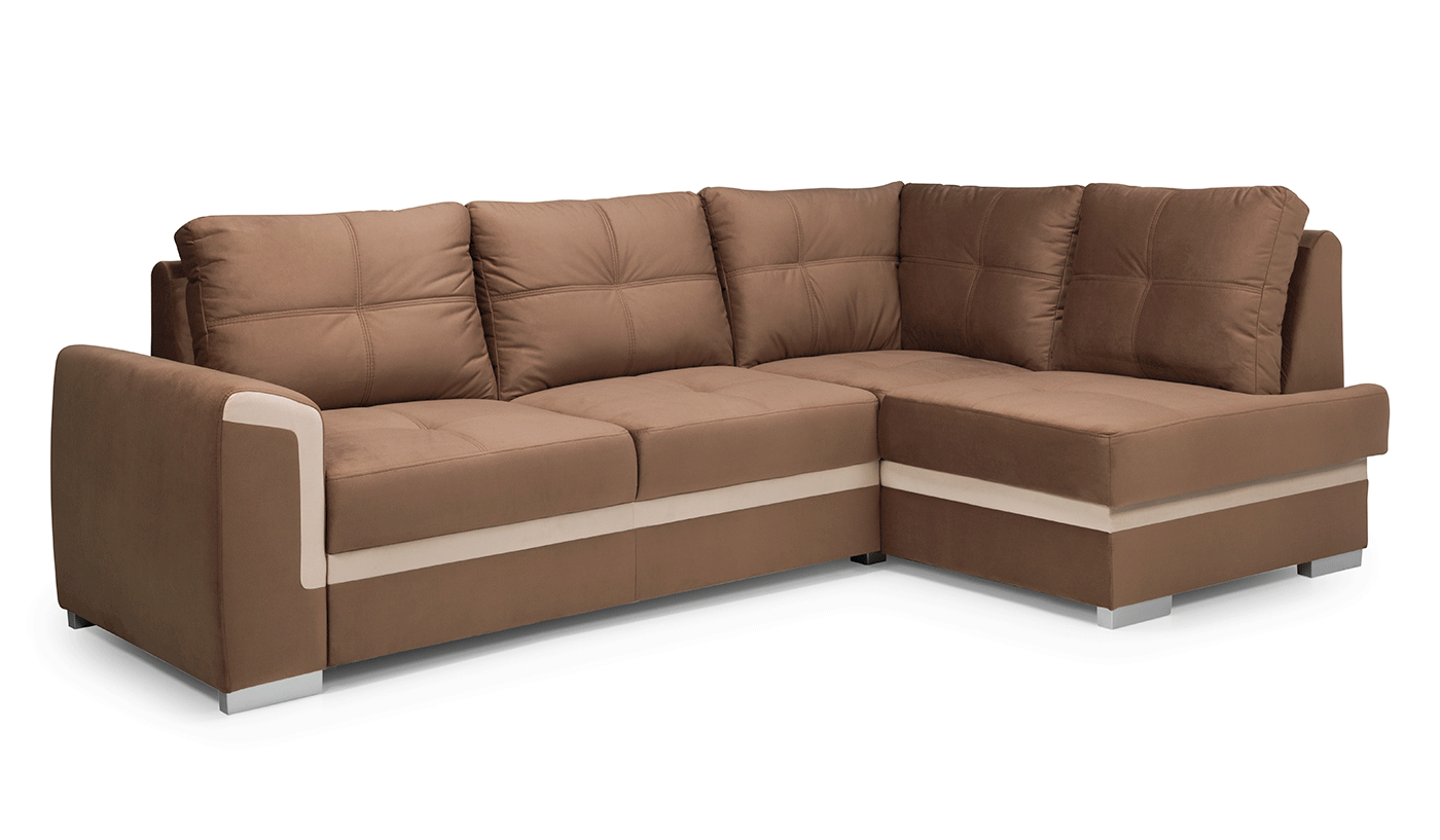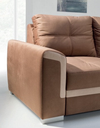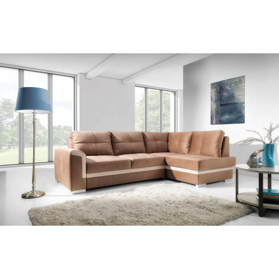 Moderní rohová sedací souprava. Sedačka je rozkládací s lůžkem pro příležitostné přespání, úložným prostorem pro lůžkoviny nebo deky. Sedák rohovky má pružinové vlnovce a odolnou PUR pěnu, nožičky jsou z tvrzeného plastu. Velký výběr potahových látek s nešpinivou úpravou.