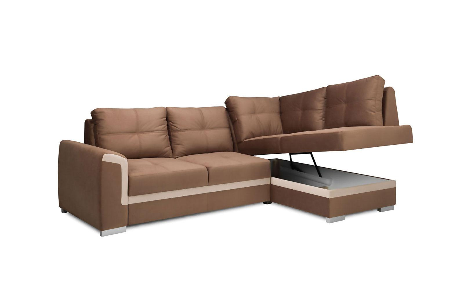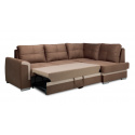 Moderní rohová sedací souprava. Sedačka je rozkládací s lůžkem pro příležitostné přespání, úložným prostorem pro lůžkoviny nebo deky. Sedák rohovky má pružinové vlnovce a odolnou PUR pěnu, nožičky jsou z tvrzeného plastu. Velký výběr potahových látek.
