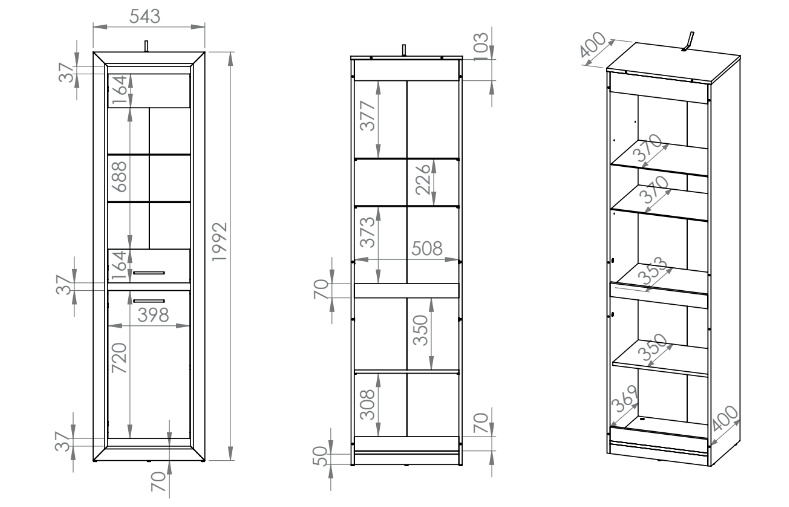 Rozměry: š. 55 cm / v. 200 cm / hl. 43 cm
