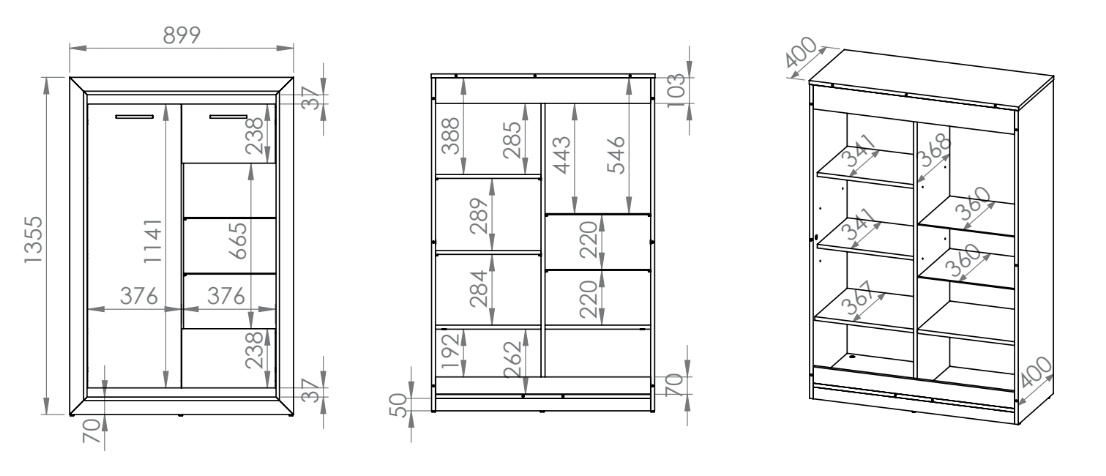 Rozměry: š. 90 cm / v. 136 cm / hl. 43 cm