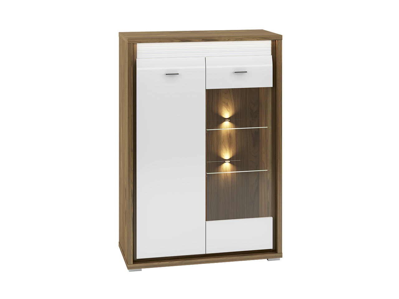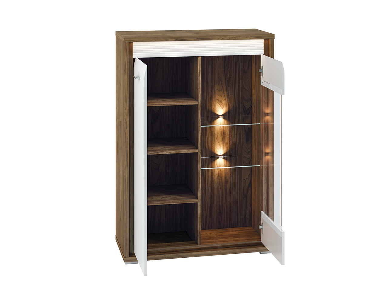 Vitrína DALLAS 06 - dvoudvéřová, částečně prosklená, s poličkami. Možnost doobjednání LED osvětlení.