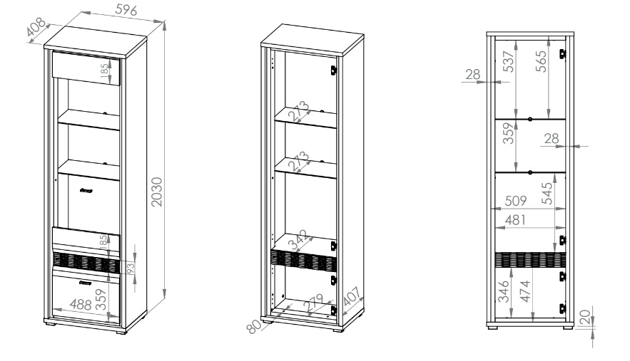 Rozměry: š. 60 cm / v. 203 cm / hl. 41 cm