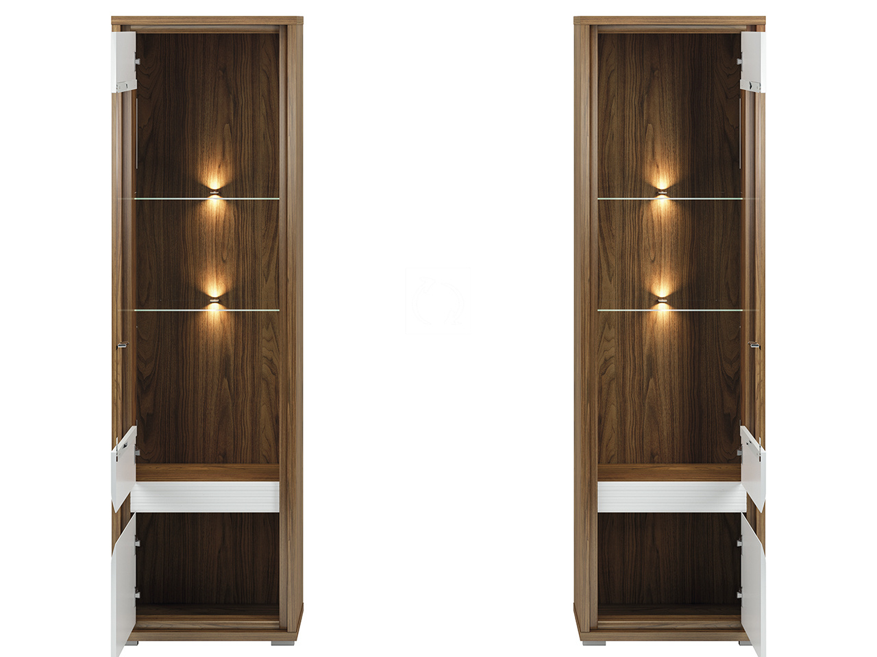 Vitrína DALLAS 09 - dvoudvířková, částečně prosklená s policemi. Možnost doobjednání LED osvětlení.